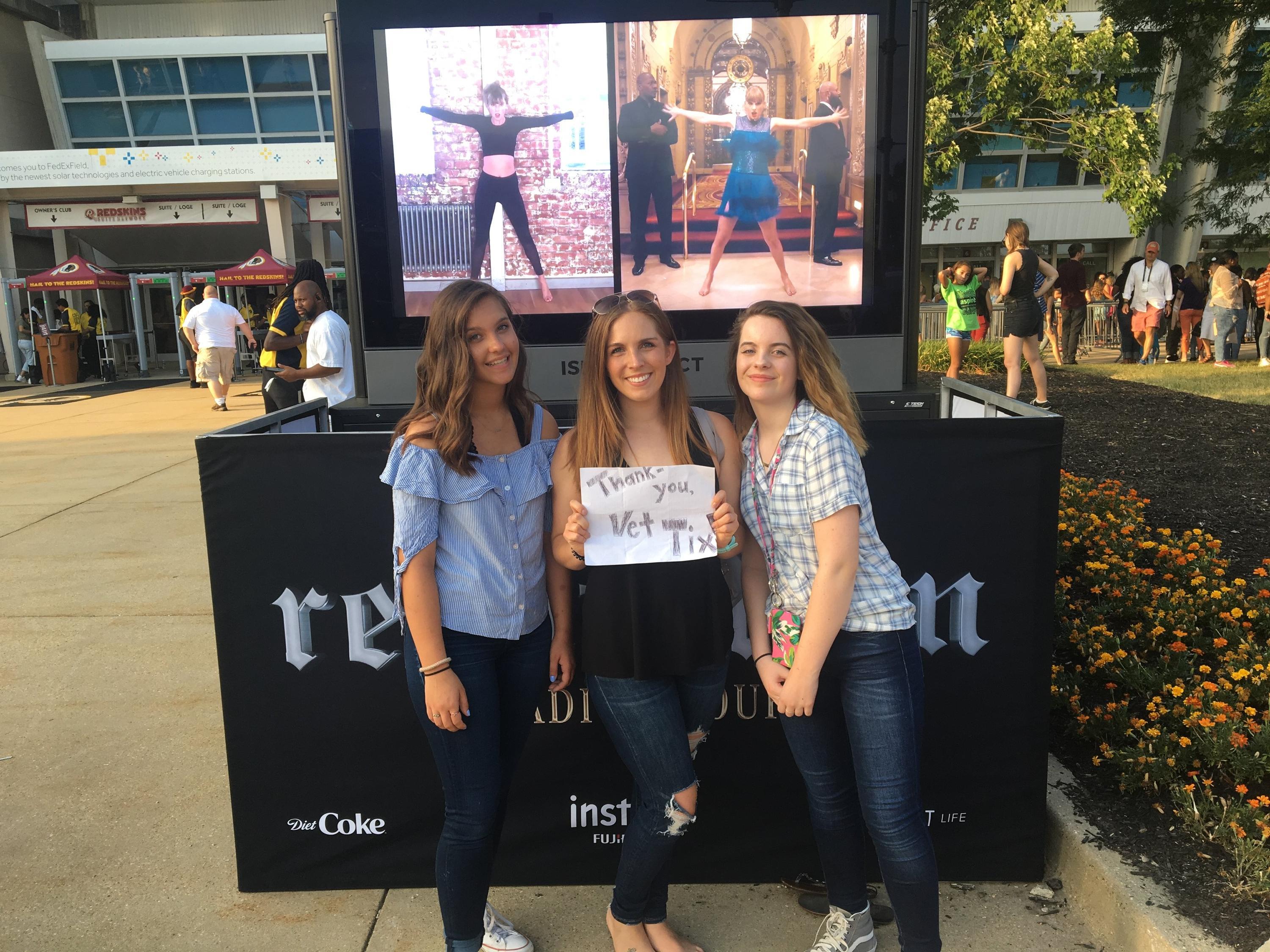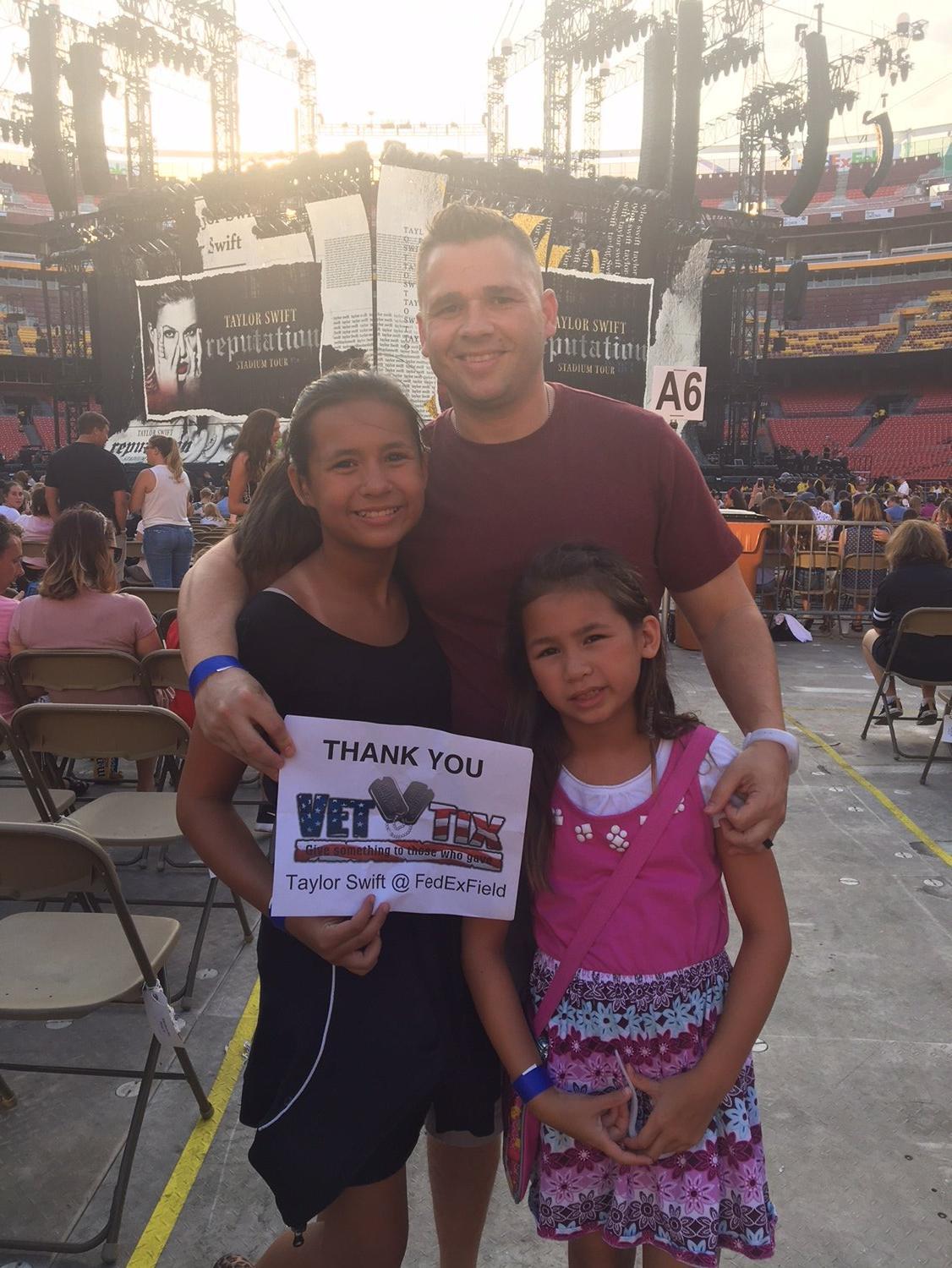 My daughters and I had a great time at the Taylor Swift concert. We would have never had this chance without the support and donation of the tickets. Thank you so much to Messina Touring Group,LLC and VetTix for making this possible!