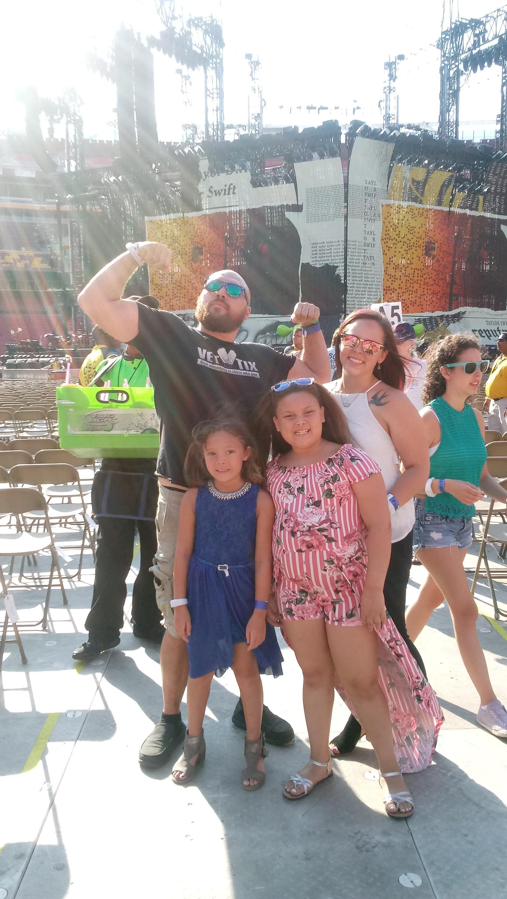 I can not believe that I was able to take my wife to see Taylor Swift thanks to Vettix and the amazing donors! Not only were we able to go to the show but we had floor seats five rows back from the stage we could not believe it and it made my wife beyond happy. She said it was by far the best concert she's ever seen! I can not thank you enough for an amazing night out, it's not one that we will soon forget!