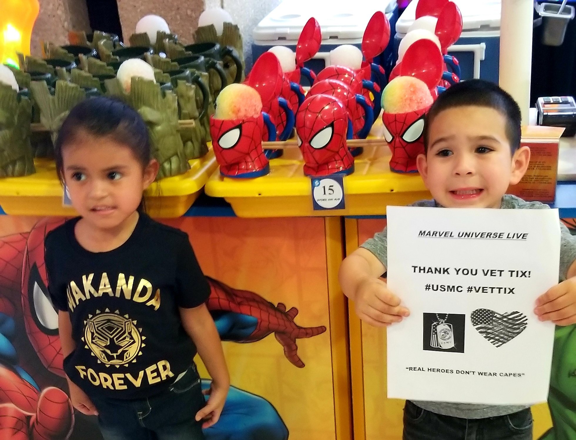 I would like to say "Thank You" to the kind donor/donors that made it possible for me and my family to attend Marvel Universe Live. The kids and I had a great time. The seats were great, the show was awesome and I appreciate Vettix for making this all happen. God Bless the Donors, thank you again!