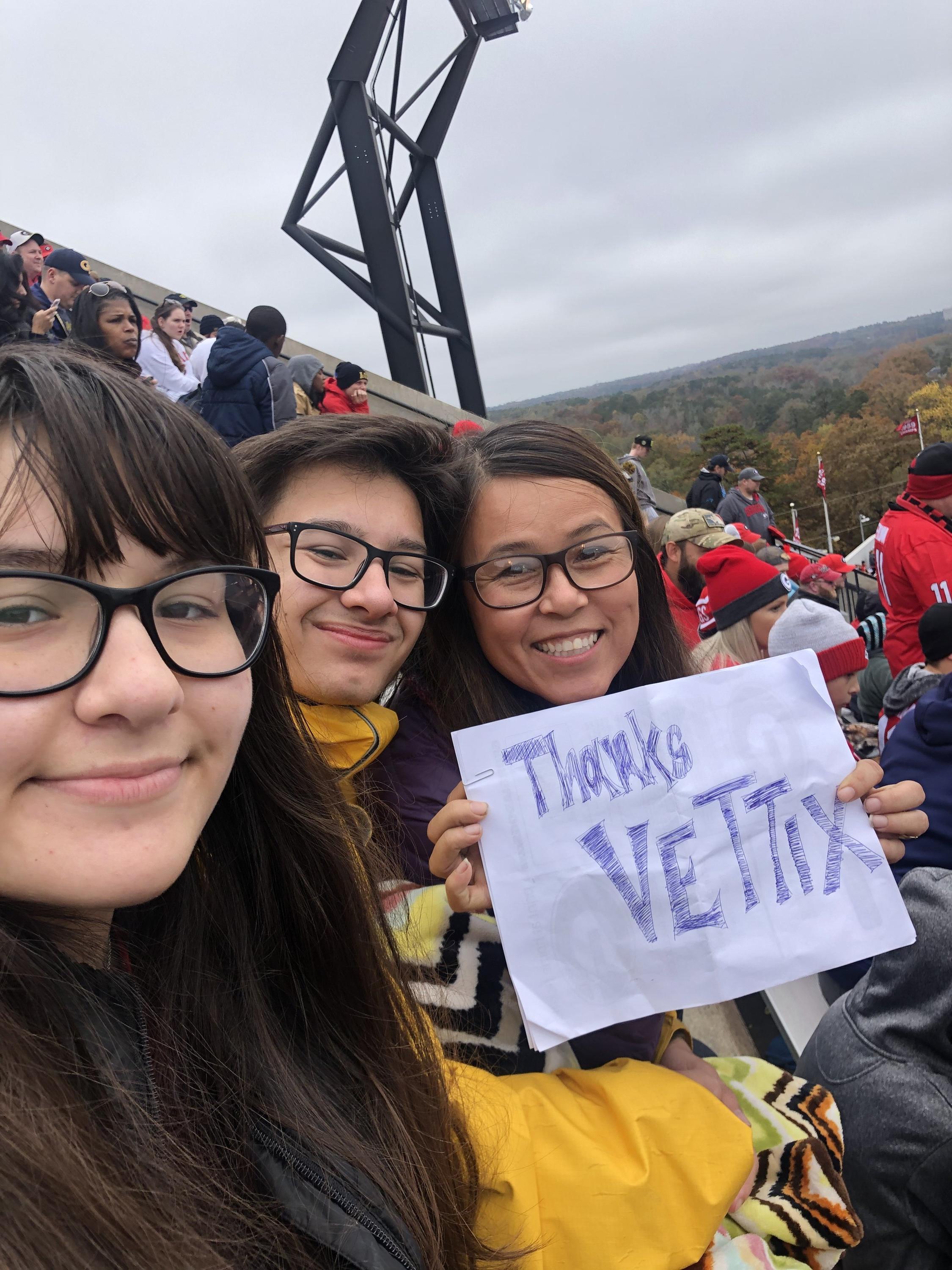 #vettix thank you so much for allowing us to attend a great in state rivalry and see our favorite Georgia Bulldogs win! We had a great time! Thank you for all your support of our military families!