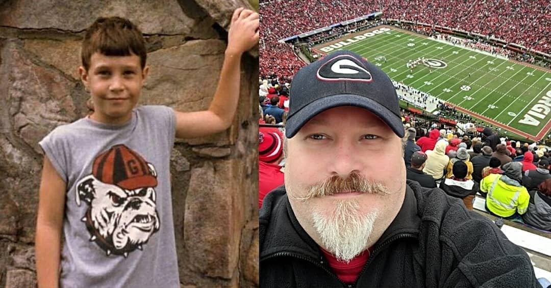 Thank you so very much for making my first GA vs GA tech game happen!! It was such an amazing time! My husband is a life long UGA fan and it was such a blast to share this experience with him. Here he is a child and as a handlebar mustached man.