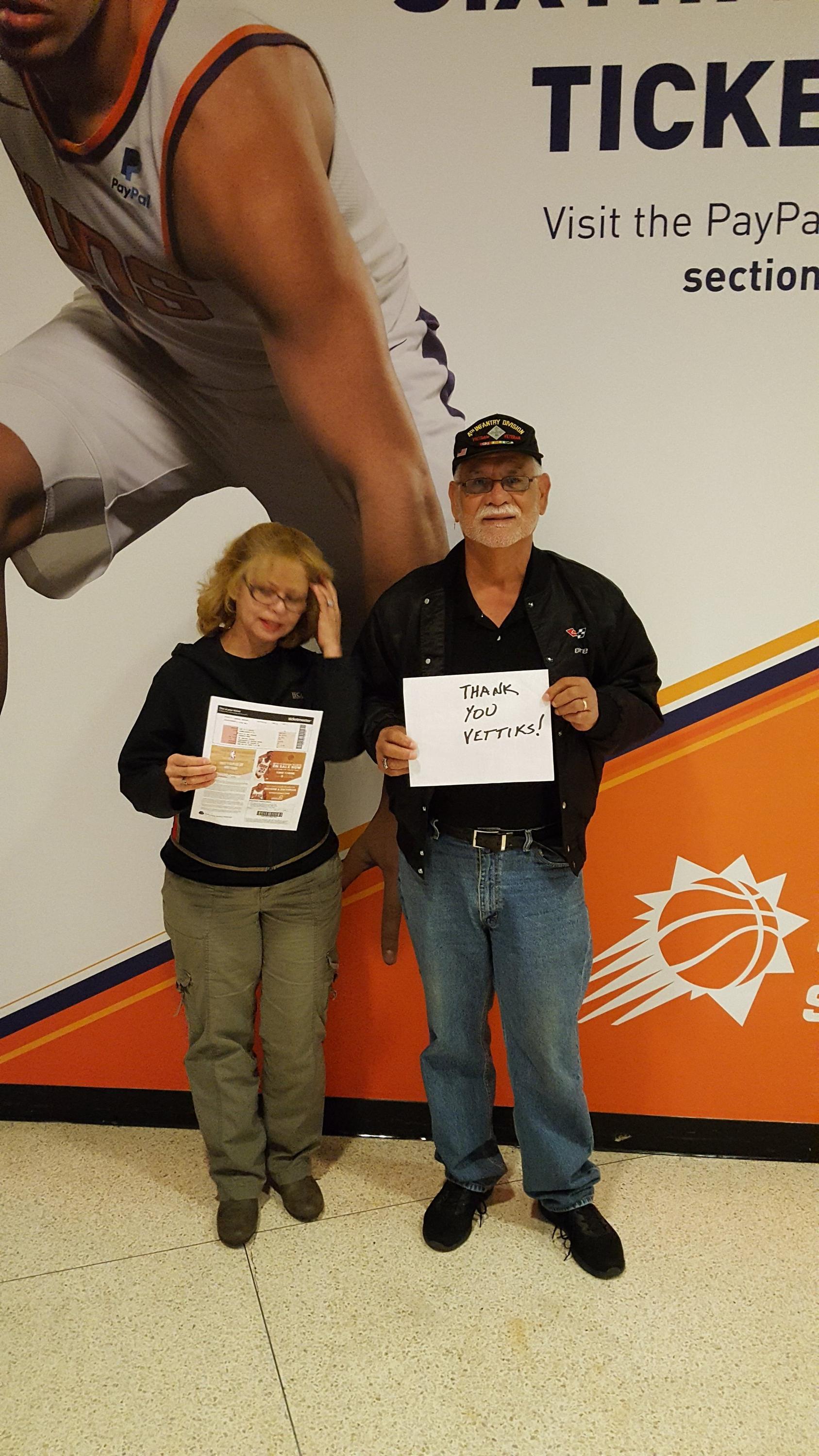 A big THANK YOU to the Phoenix Suns and Vet Tix for another great out with my family. Your the Best!!!