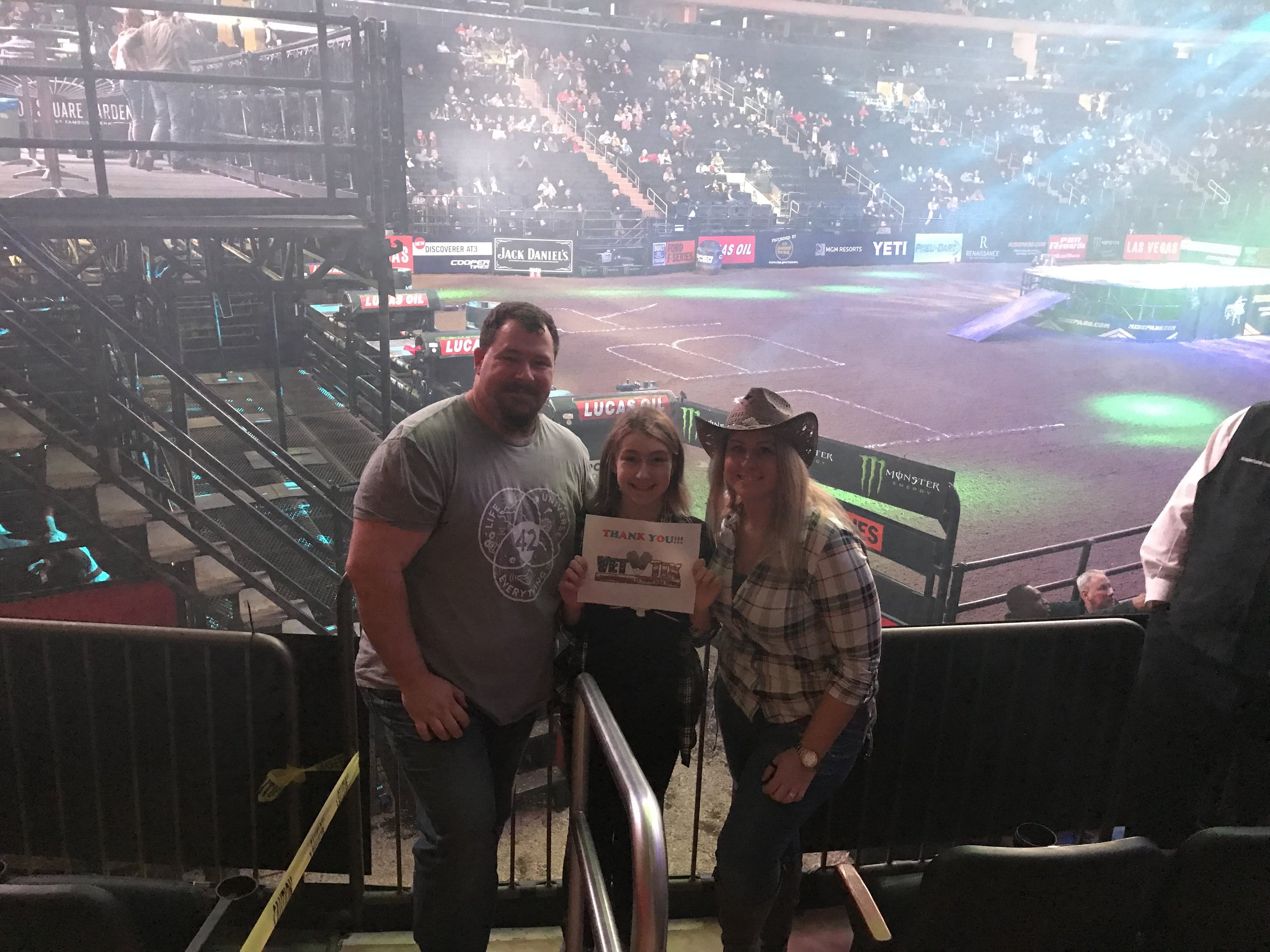 Thank you so much for the tickets to PBR Unleash the Beast in Madison Square Garden! We had an amazing time! The stadium was packed and we had incredible seats!!! We've always wanted to go, so we want to thank VetTix and the donor for the wonderful seats!!! Thanks for your generosity!!