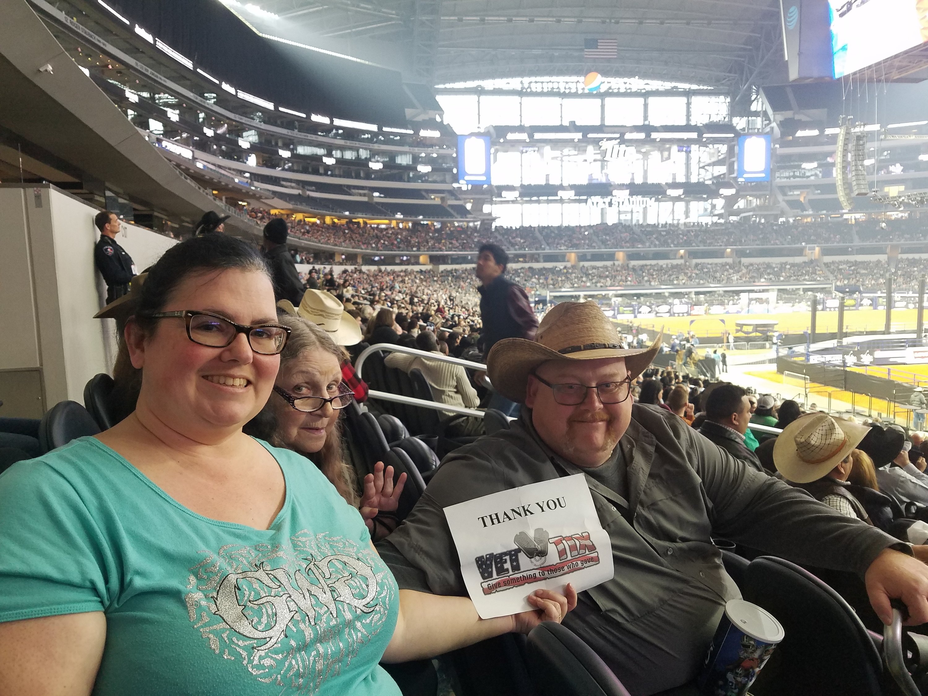 Thank y'all so much for the tickets to the PBR world cup at AT&T Stadium. The seats were awesome and we had a great rime!