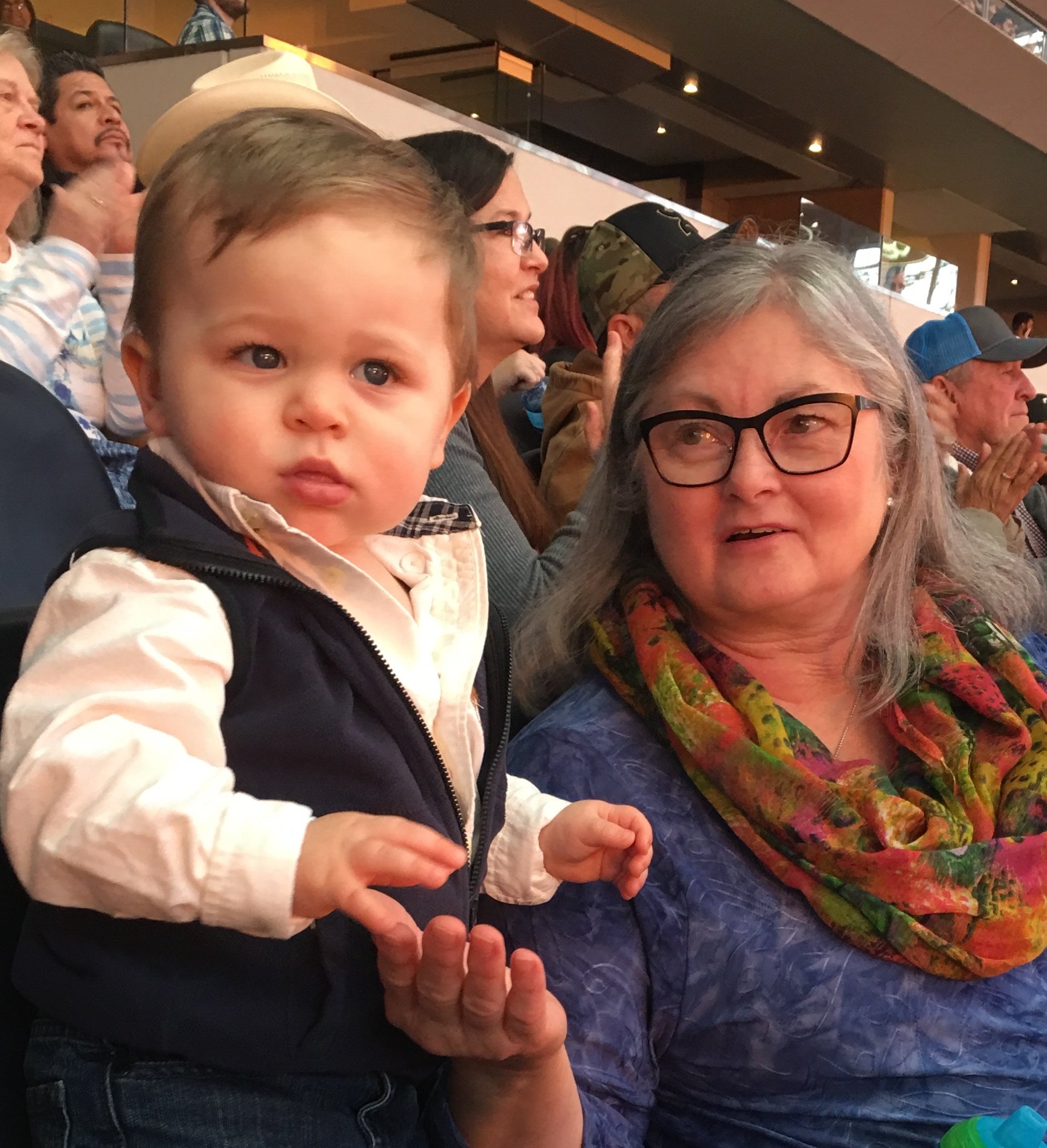 I would like to thank the Professional Bull Rider family for providing tickets to attend their event at the AT&T Center on Sunday, February 11, 2019. It provided an opportunity for my wife and me to take our daughter and grandson, JW Sikes, to his first Bull Riding Event. His dad is a team roper who was away at the time of this event. Attached is a photo of JW and his grandmother, Debbie. JW was impressed with the fireworks. At 15 months, he kept saying, "hot," whenever they went off. The seats were good and we were honored by PBR's gift. Thank you for being so thoughtful.