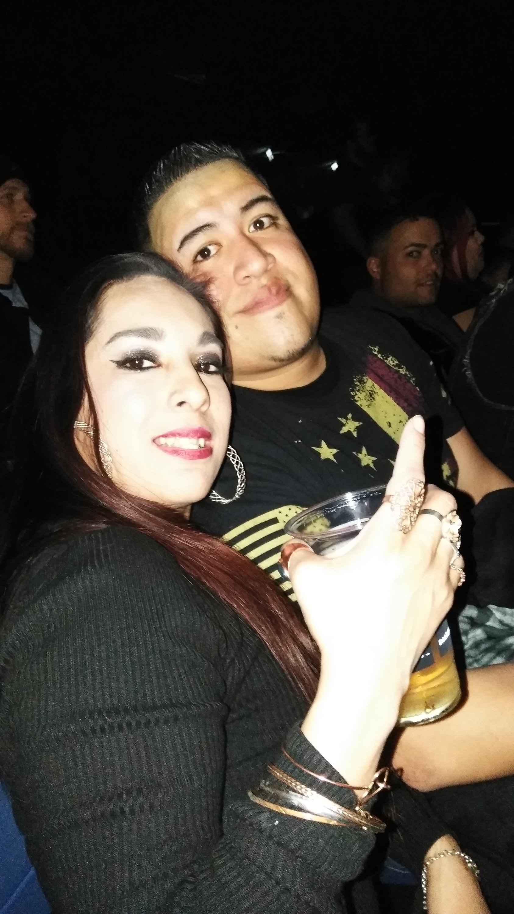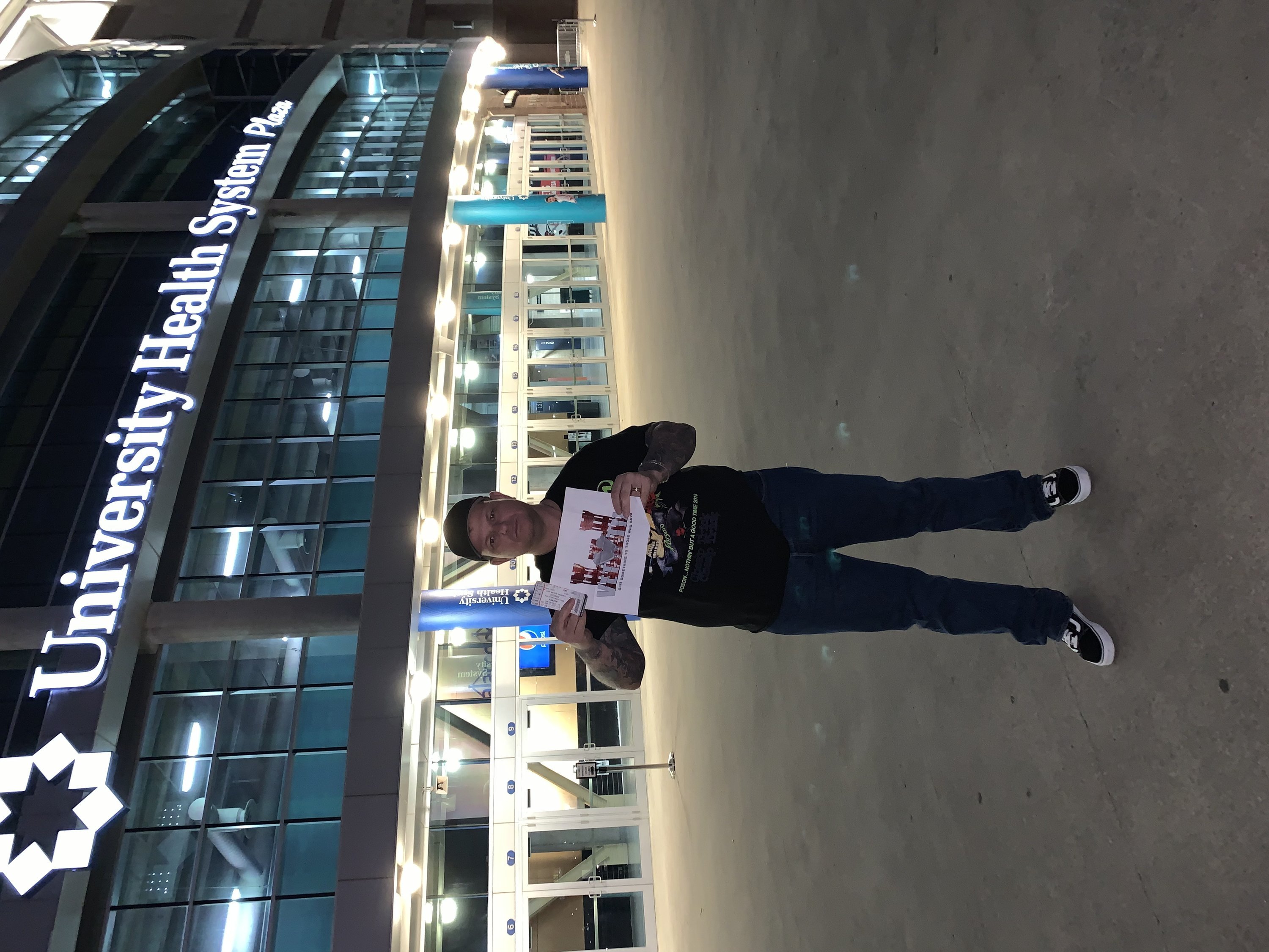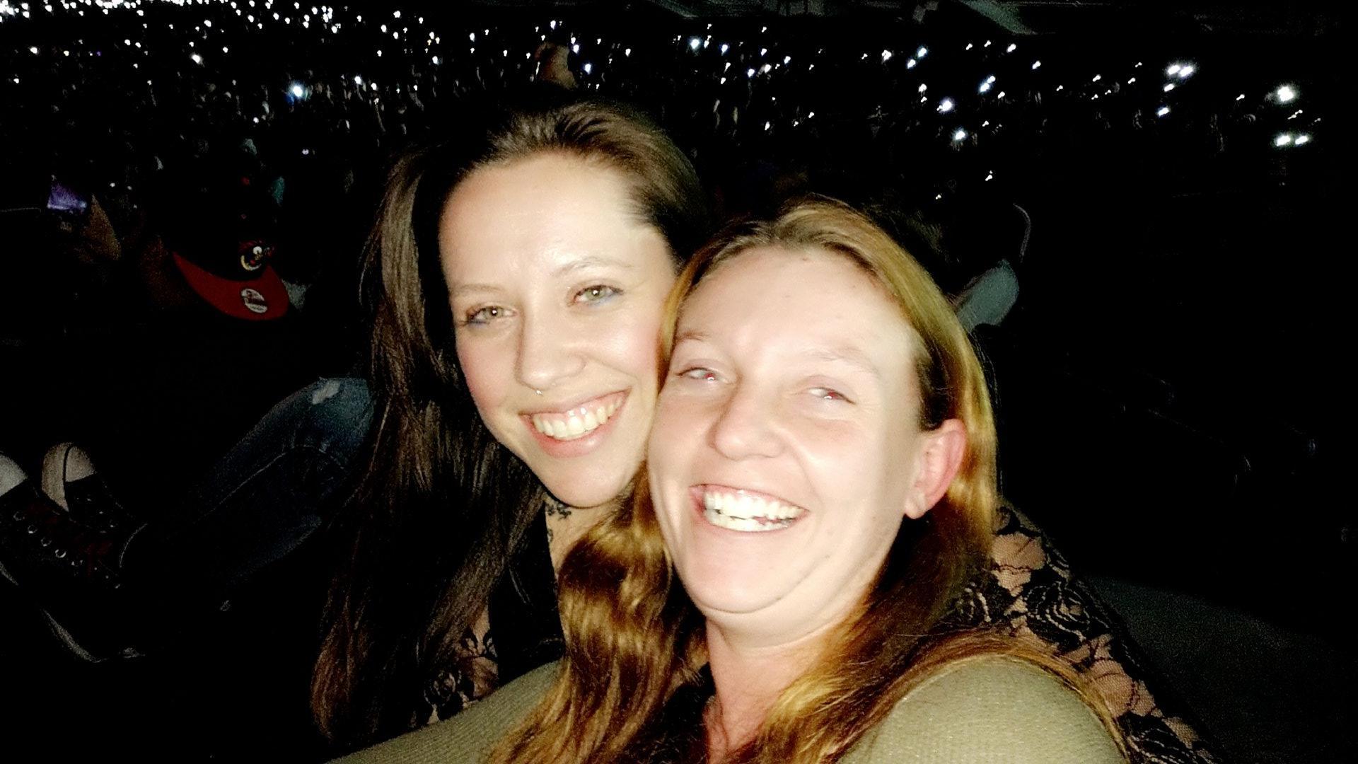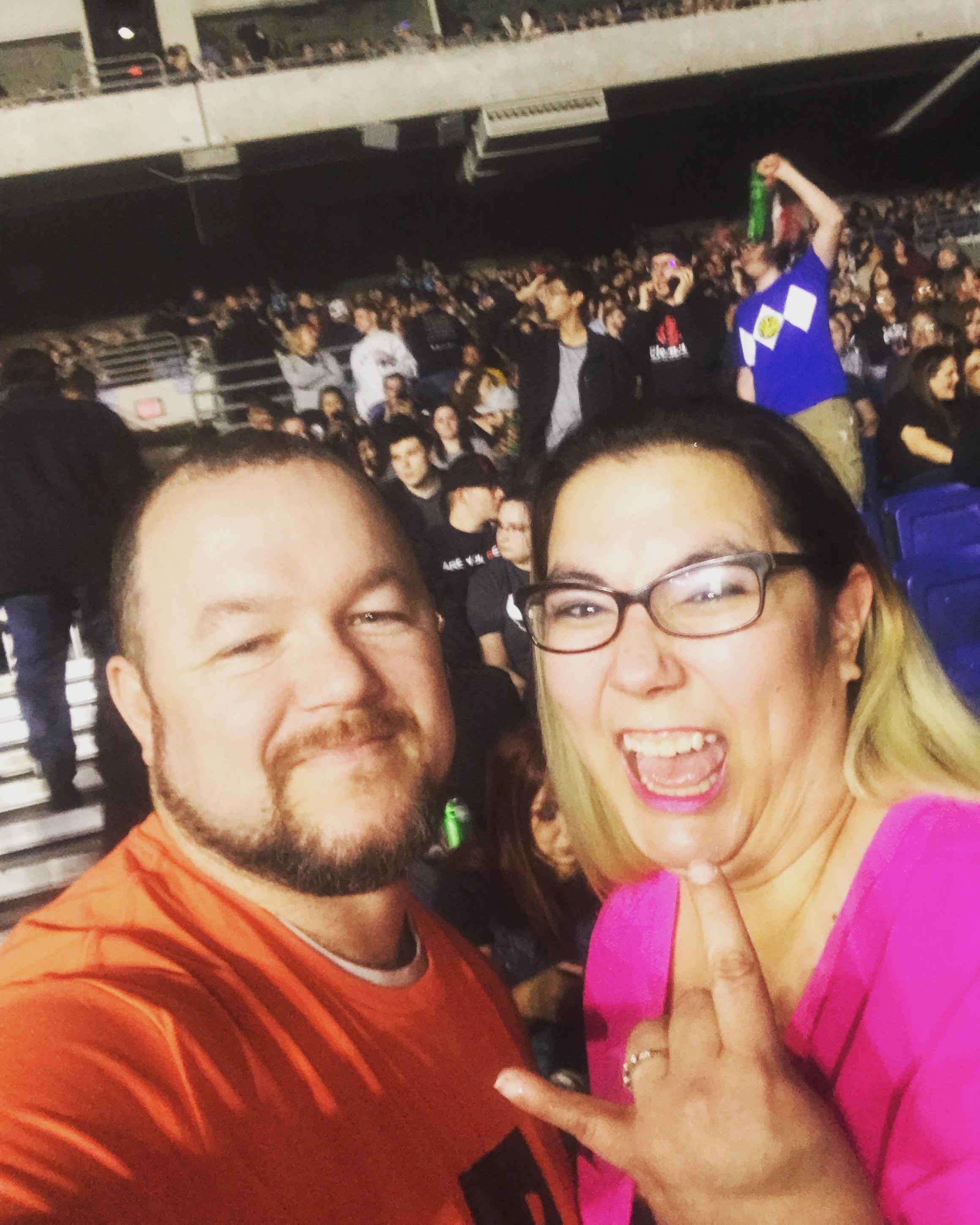 Thank you so much! I don't get out much, but enjoyed every minute of this event. These were great seats! I don't know who donated these tickets, but I want you to know I am truly grateful for your gift. It is really rare for me to go anywhere, much less when I go with my family. You can only see my oldest daughter in this photo with me. It was her first concert. David Draiman (of Disturbed) wove in positive messages about freedom from addiction and help from thoughts of self-harm. Very, very cool.