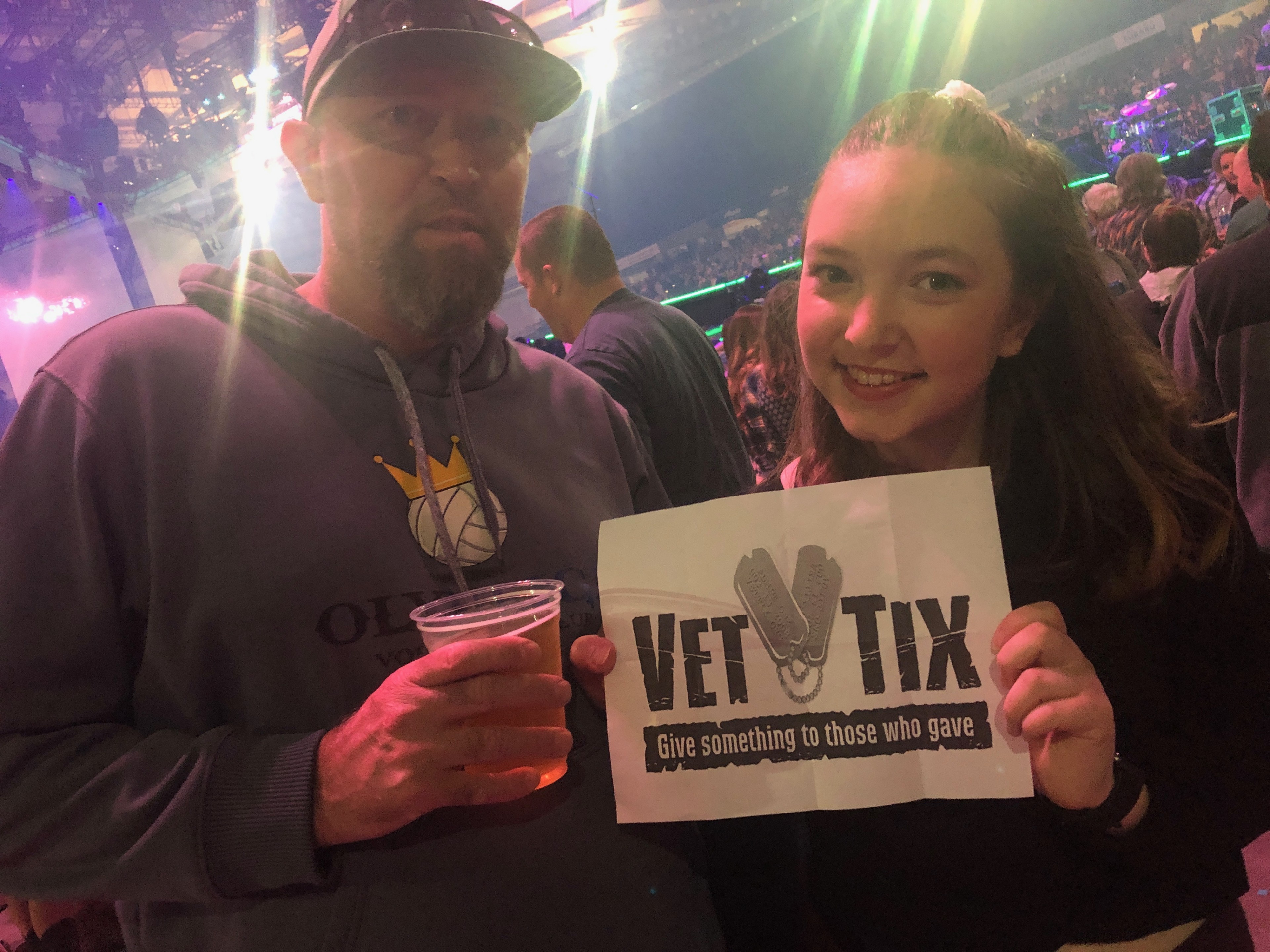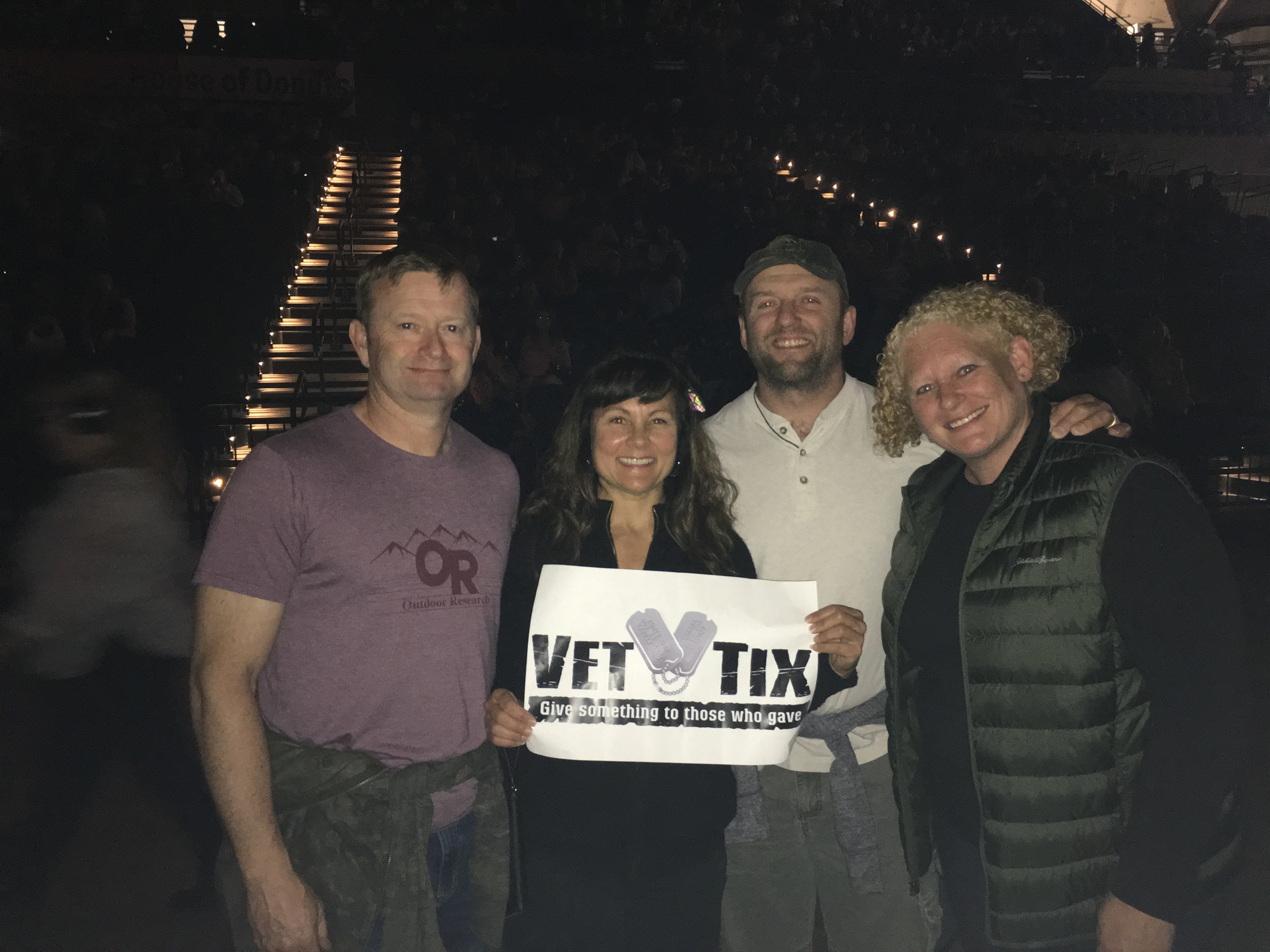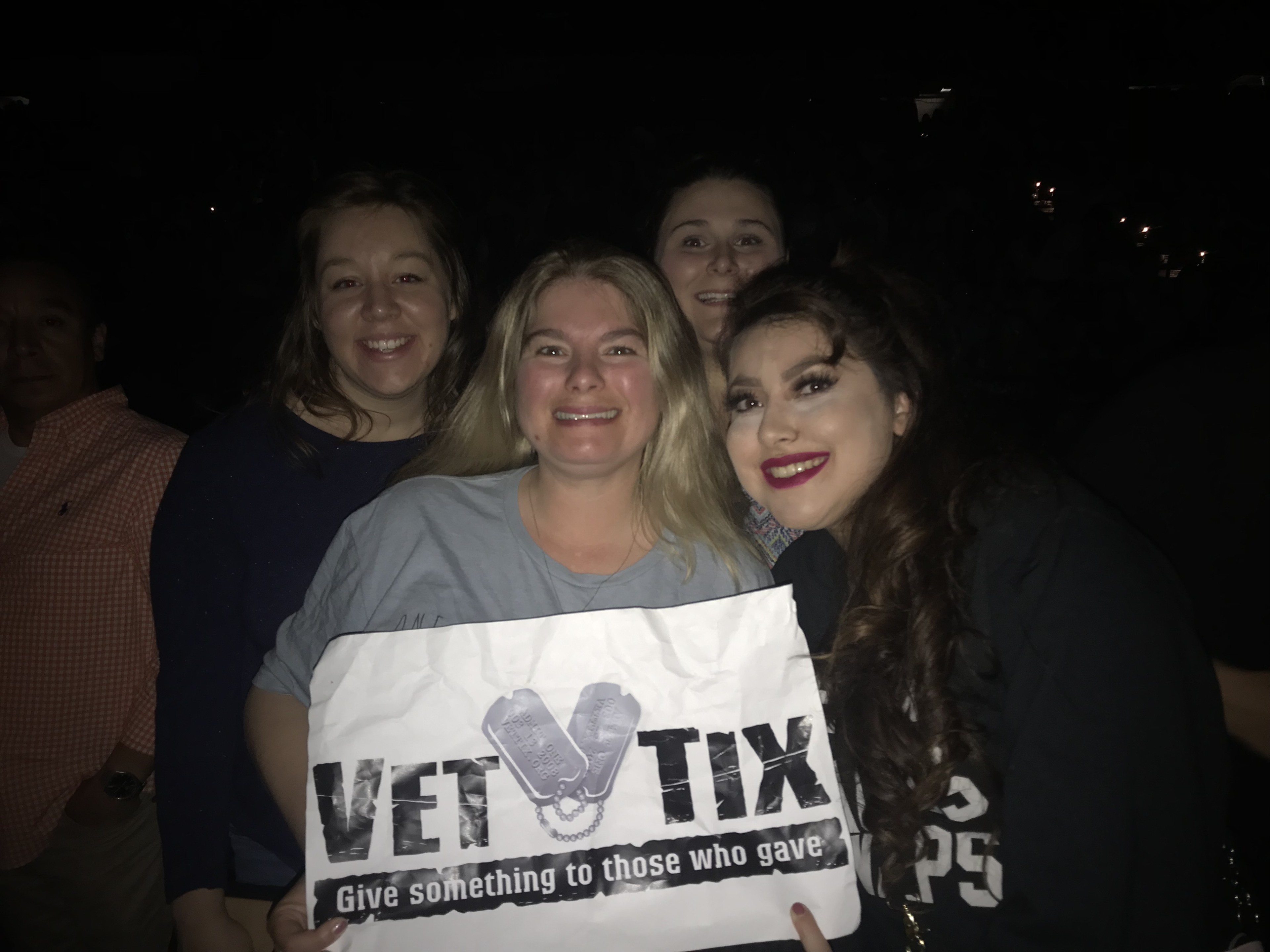 Thank you to Vet Tix and all of the individual donors who made this a special night. Regardless of the look I have in the picture, my wife, daughter, and I had a great time. The tickets gave us an up close view of the concert. The selflessness of those who give to Vet Tix is amazing. These opportunities that we are given to spend time with our friends and loved ones are priceless memories. Thank you again!