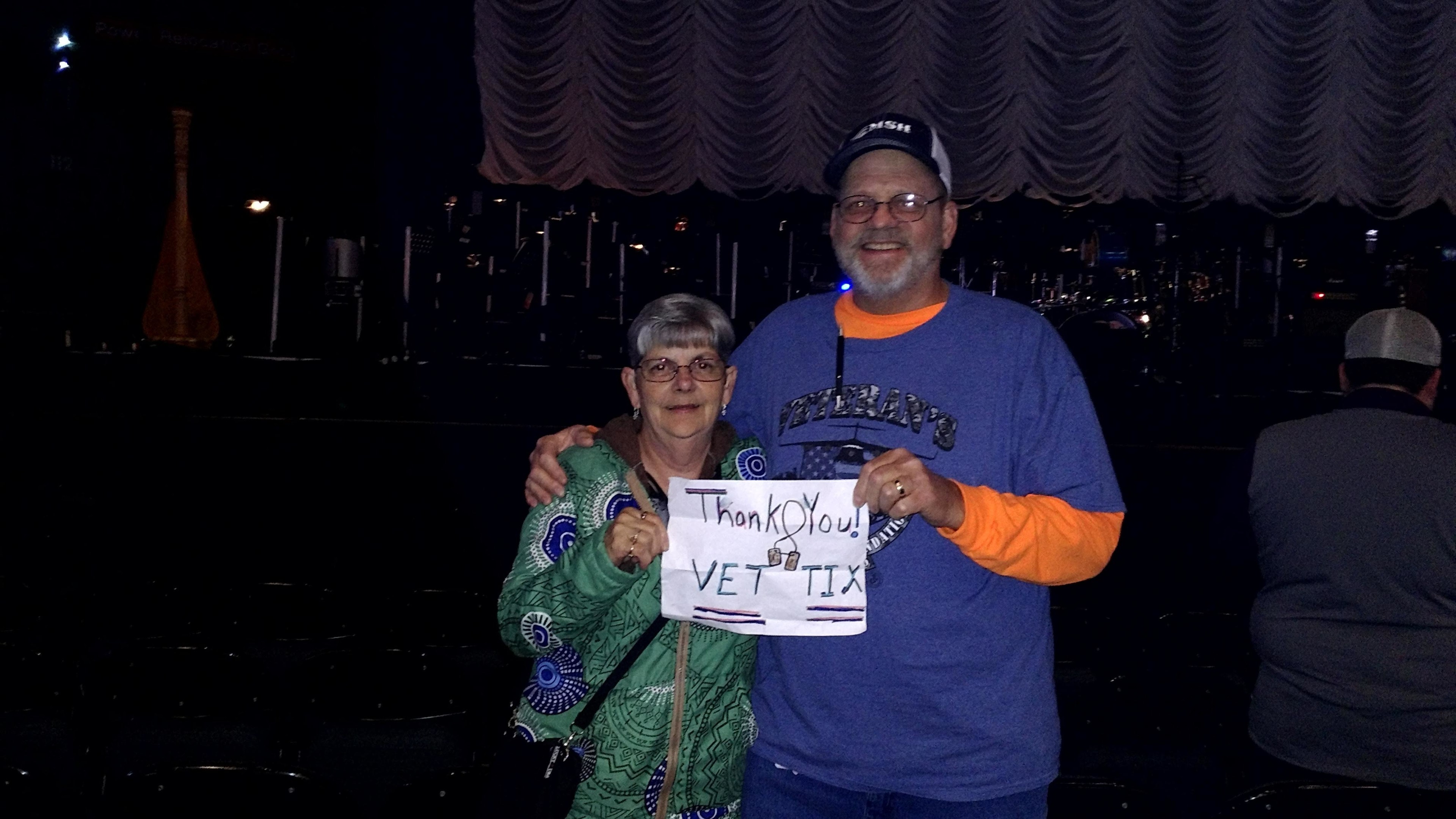 THANK YOU SO MUCH VET TIX AND YOU'RE DONORS FOR A MEMORABLE TIME OUT WITH FAMILY AND FRIENDS. 2 OF MY FAMILY TOOK THEIR WIVES ON THERE 1ST DATES TO A WHO CONCERT BACK IN THE EARLY 70'S. WOW GREAT TIME. THANK YOU AGAIN AND GOD BLESS