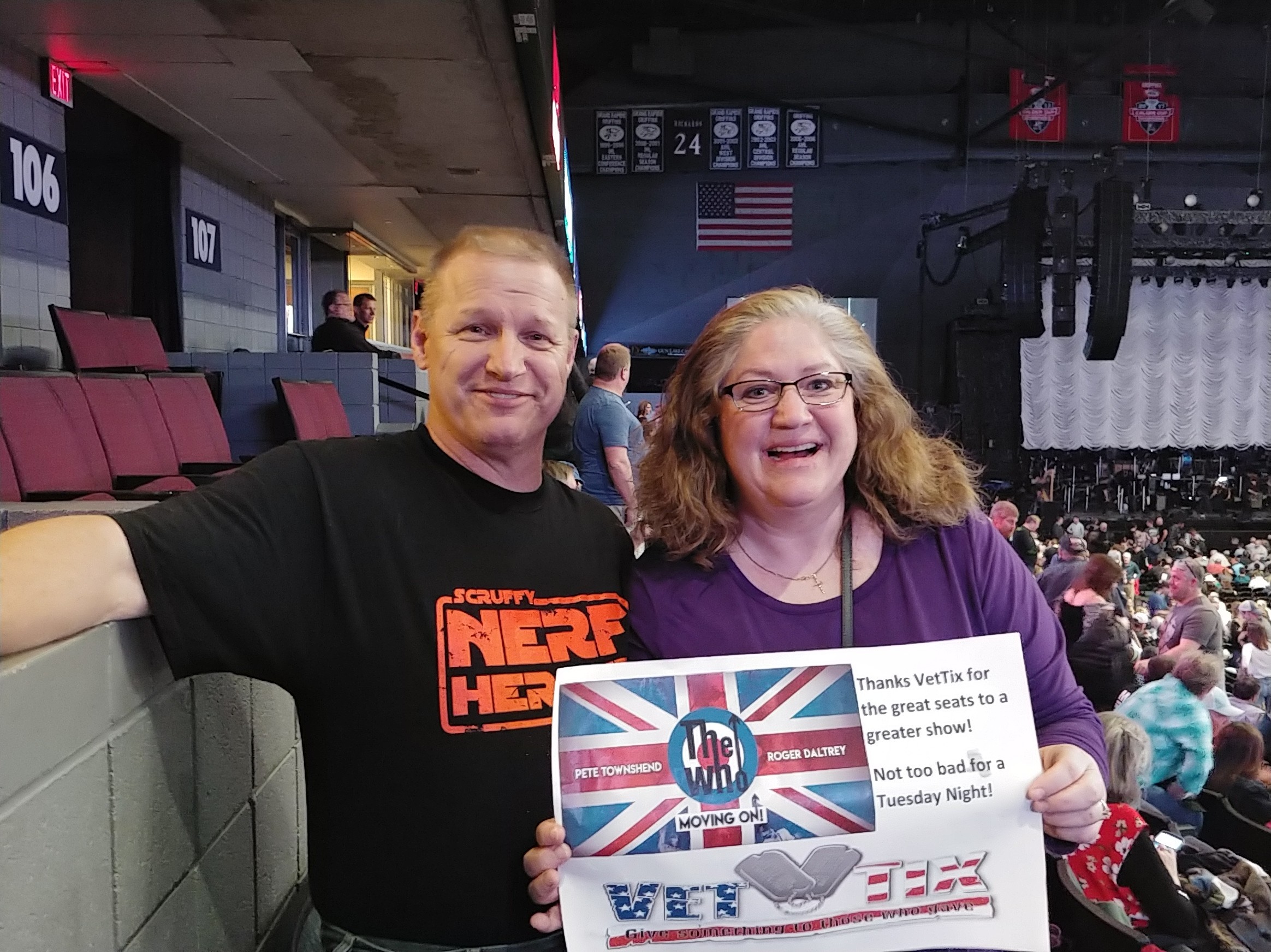 Thank you VET Tix, and the donors who make these events possible. I've never been to Grand Rapids, Michigan before. Nice town, great venue. Pete Townsend, Roger Daltry, the rest of the band, AND the orchestra that accompanied them were fantastic. The WHO showed everyone why they're rated among the Top10 rock bands in the world. Thanks again VET Tix!