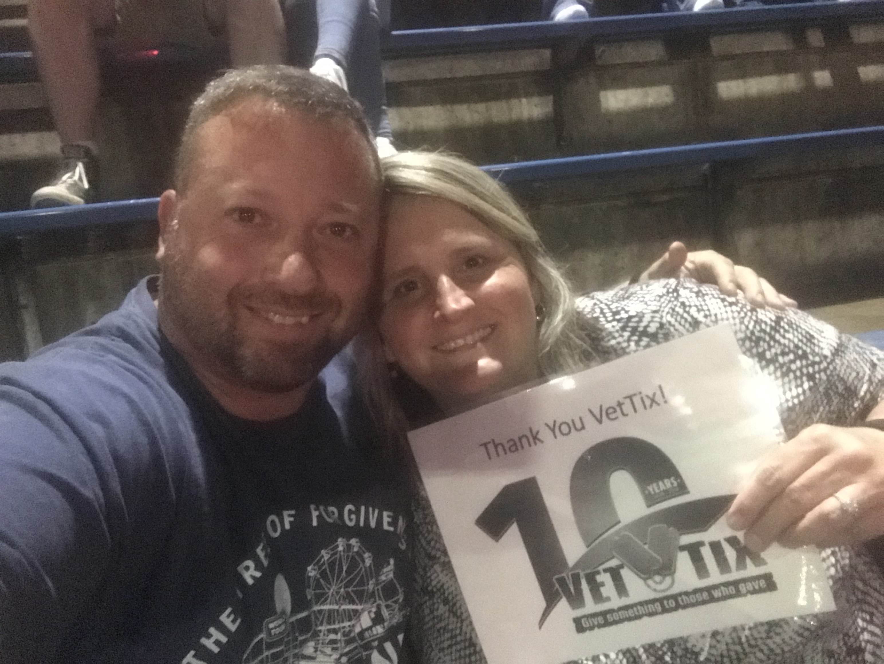 I just wanted to say to Live Ticket Nation and all the other wonderful donors that make going to these concerts possible for us veterans. Without your amazing generosity I would never be able to afford and attend the majority of these concerts. Especially a Pink concert. I had so much fun! She is definitely one of my favorite and it was an dream come true to be able to see her live in concert. It was AMAZING! Again, thank you so much for the blessings you bestow upon me and all the other families. We love and appreciate you so much! P.S. I am so sorry, but the person who took the picture for me was a random stranger and he didn't let me know that my sign was backwards. It did say I love you vettix.org and thanks you on the other side. ðŸ™