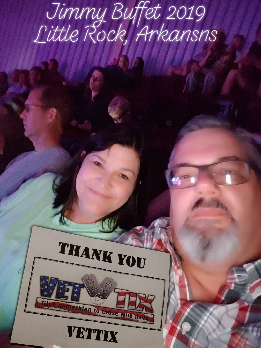 Thank you for the donation for us to see Jimmy Buffett. We enjoyed ourselves immensely!
