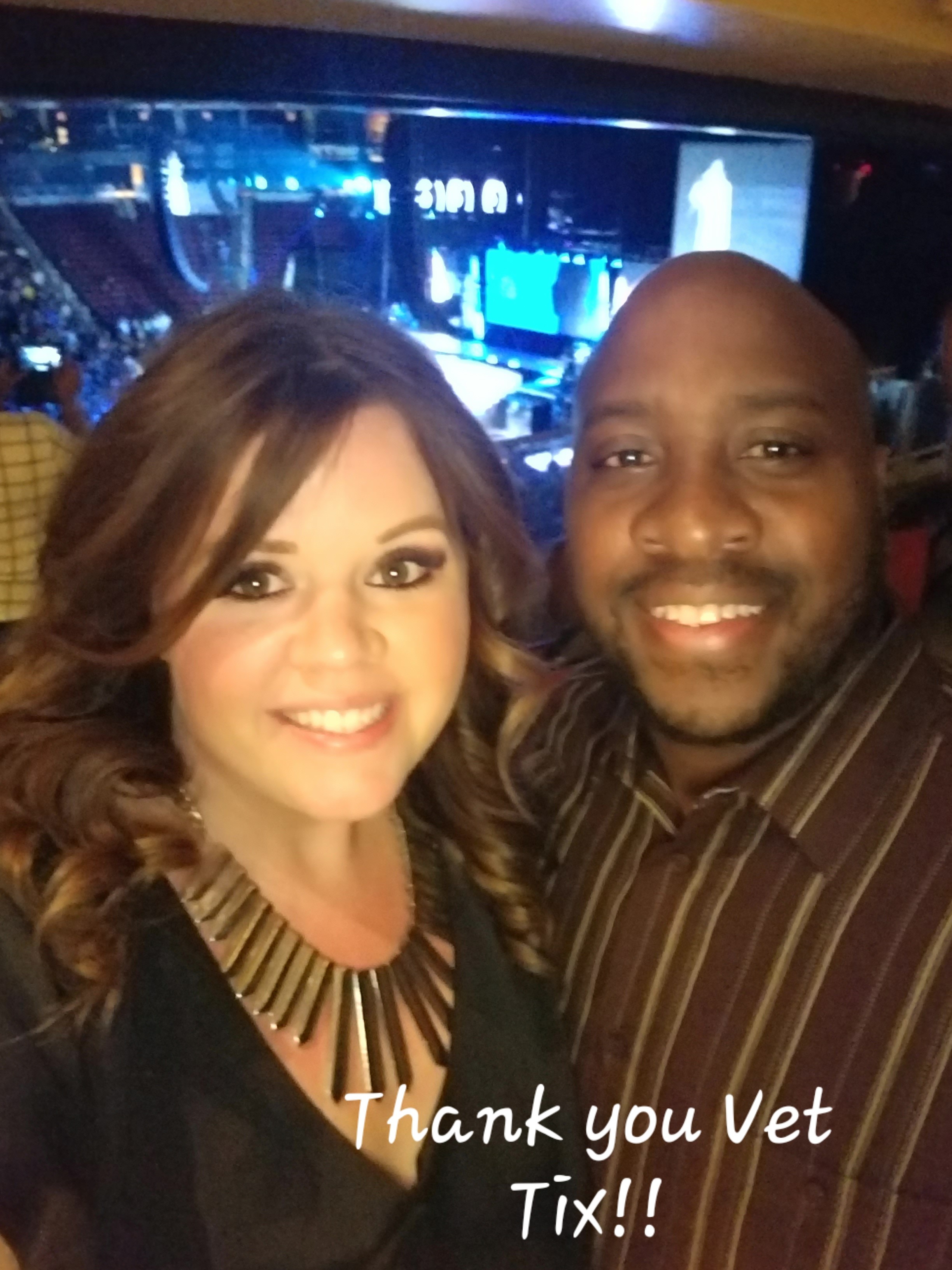 Thanks so much for the great seats. The concert was amazing and we made some good memories. We really appreciate you for this! Thanks to all the donors that make it happen for us Vets!! You're truly nice people and God bless you.