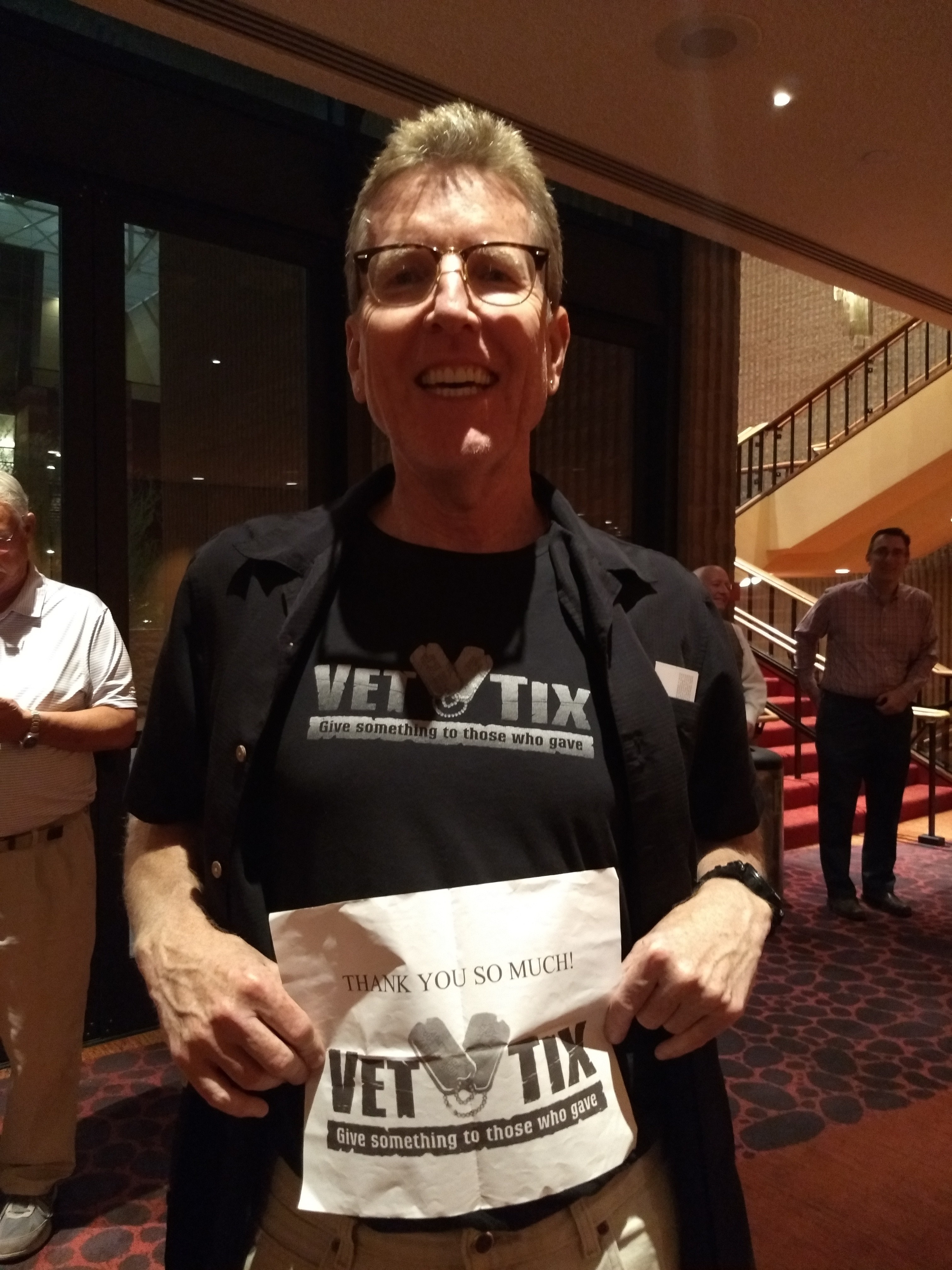 Thank you for donating your tickets to VETTIX. My wife and I attended the Broadway Celebration on friday night with friends (he's also a veteran) and thoroughly enjoyed the show. What a great evening! Thanks for making it possible by supporting those who serve(d) our nation.