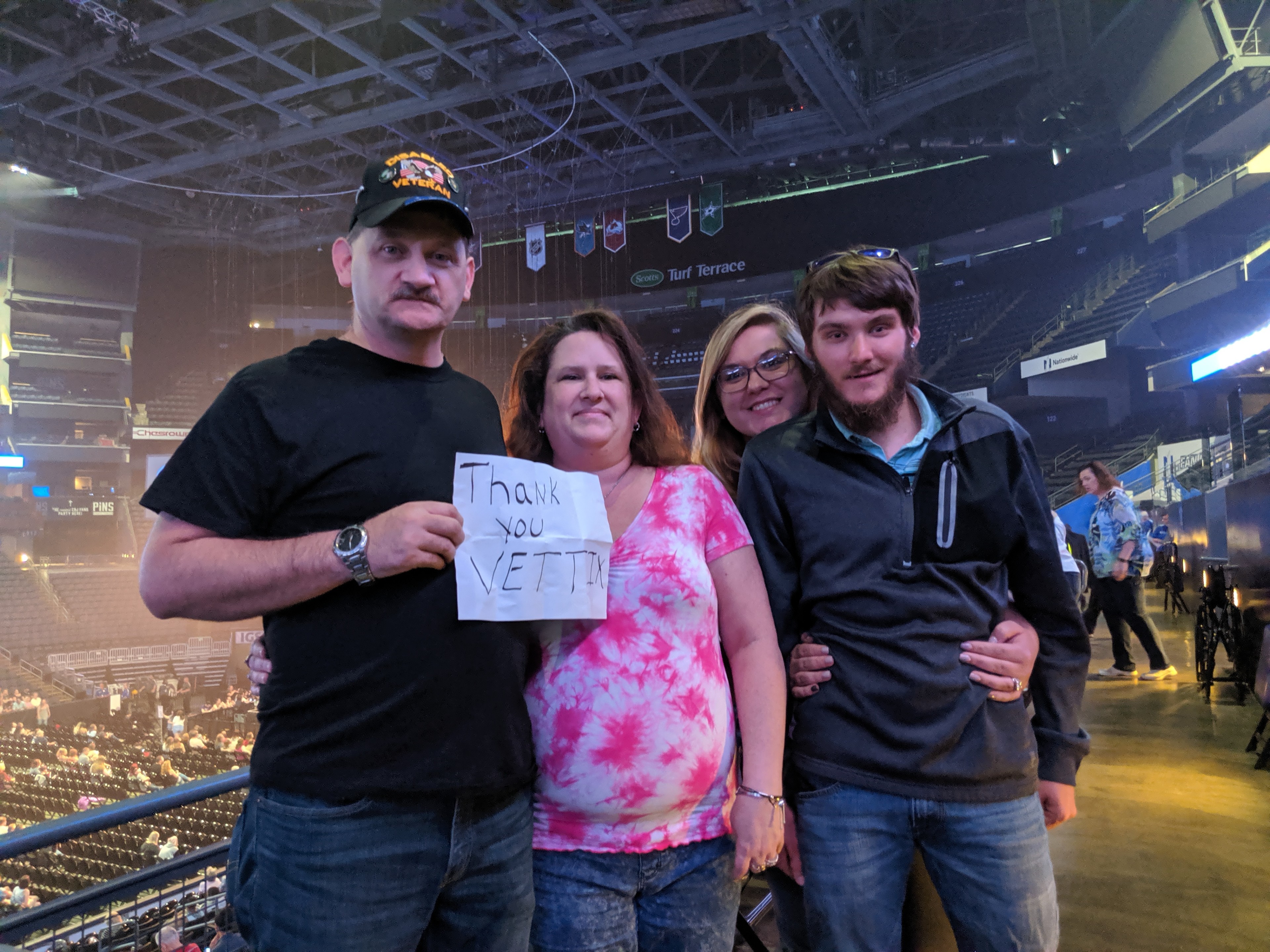 I would like to thank Vettix and Live Nation for the great tickets. These seats we in a great location. My wife and I were able to take a co-worker of my wife's and her fiance. This was there first concert because they both are autistic and nobody wants to do anything with them. I am so glad that Vettix and Live Nation gave me the opportunity to do this for them. With out the great donors and Vettix I would not be able to do this for great friends and family. Again thank you Live Nation and Vettix.