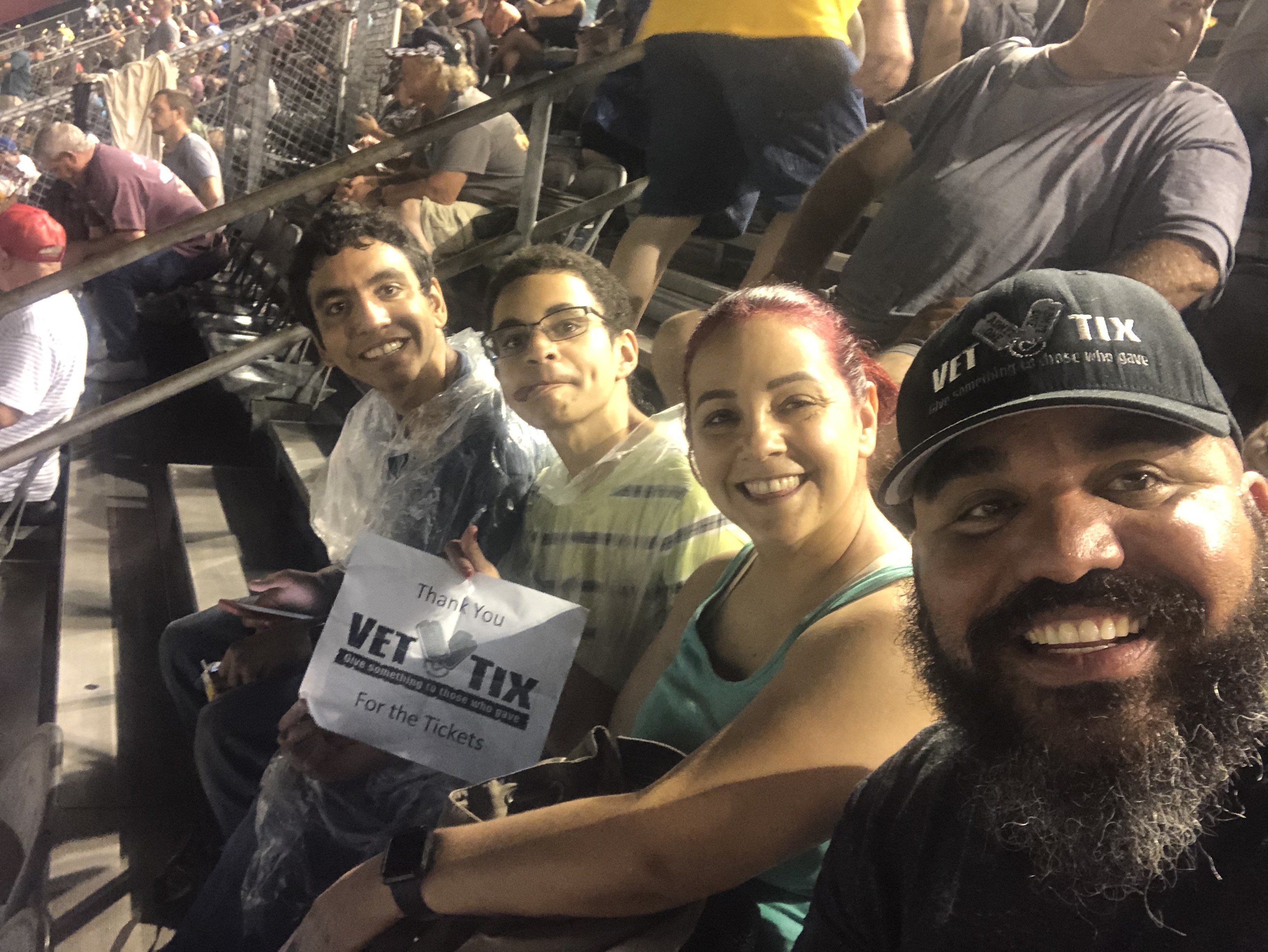 Thank you Vet Tix. Our youngest son, Joshua, who is a motor speedway enthusiast, was able to attend his very first NASCAR event. We were in a rain delay for nearly 4 hours but it was worth the wait. Engines started at 2145 and race concluded close to 0200. Best all nighter! Once again, thank you so much!