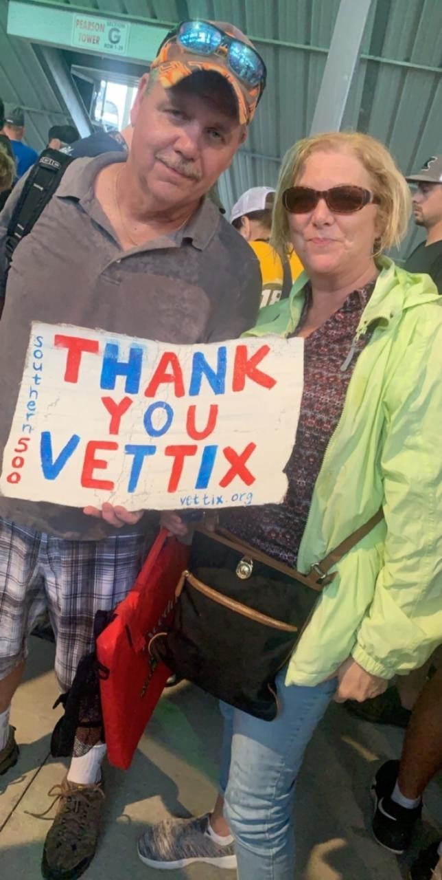 Thanks to Vet Tix Darlington Raceway I as able to complete another item on my NASCAR bucket list. A fantastic venue with exciting racing in spite of the rain ! Thank you once again for an opportunity without Vet Tix and Darlington Raceway this would not have been a reality.