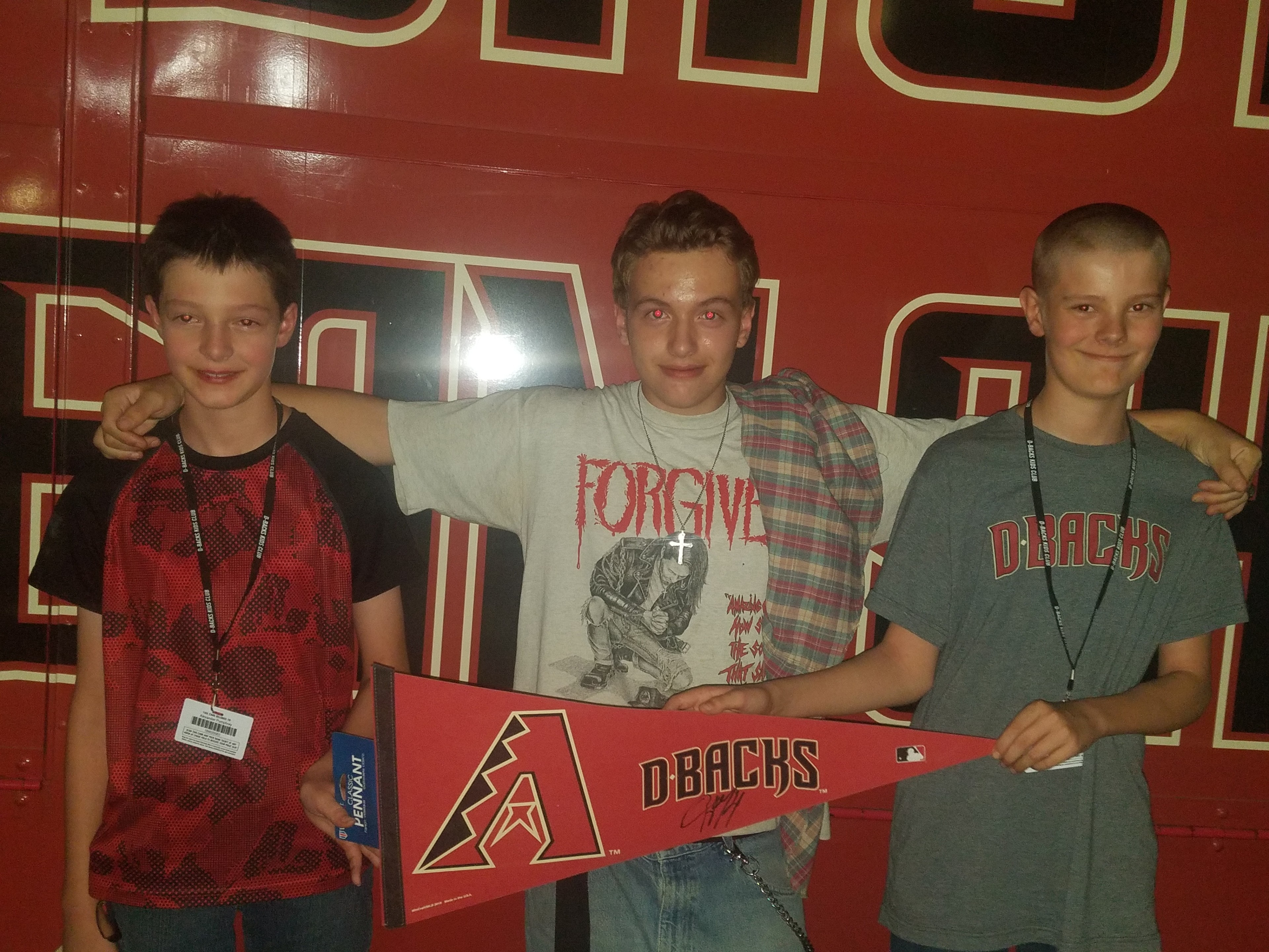 I have to start by saying I have a sixteen year old son I haven't seen in eleven years, but his aunt recently got custody of him and allowed him to travel from Arkansas to Arizona for three weeks to visit my family and I. He was here for a week and I saw these tickets available, we were going to take a camp trip that weekend but because he was here for a visit I gave him the choice of a camp trip or the game. He's never been to a professional sporting event so he picked the game. Now my other two boys and I have been to a few Diamondbacks games thanks to the Dbacks organization and VetTix but we've never been able to get an autograph from the players. We get there early and stand on the baseline for an hour and a half but we always get passed over. But he was visiting and wanted to try for an autograph again. We went early and stood at the baseline and got passed by two players, but then Ketel Marte, the All Star came out to sign a few! It was a struggle and we nearly didn't get it, but he signed a pennant for us. It was a really awesome experience to spend time with all of my boys and see a great game, see fireworks, and get the signature. At the end of it all my son has decided he wants to stay in Arizona with the rest of my family and I so he will not be returning to Arkansas. I'm extremely grateful to VetTix and the Diamondbacks for giving me the opportunity to create memories and build my relationship with my children. Thank you.