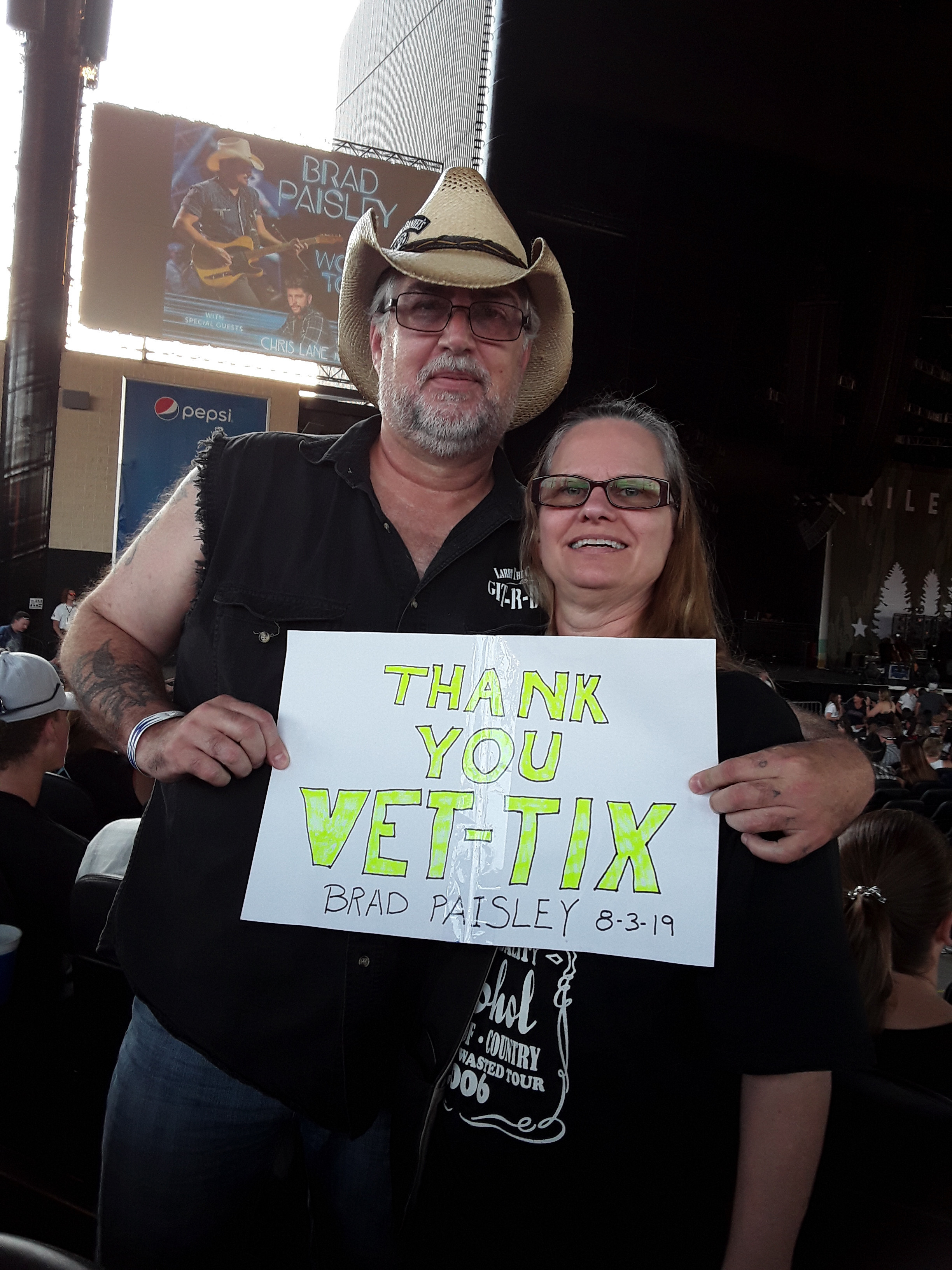I wanted to take a moment to say Thank you to Vet Tix and Live Nation for the Brad Paisley with Chris Lane tickets. My friends and I had a great time and the show was AMAZING!