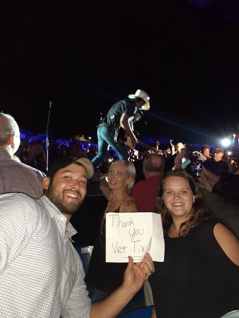My friends and I had an incredible everything at the Brad Paisley concert last night. The memories we made as friends at the show would not have been made possible without your generosity. I'm truly thankful! Thank you VetTix!