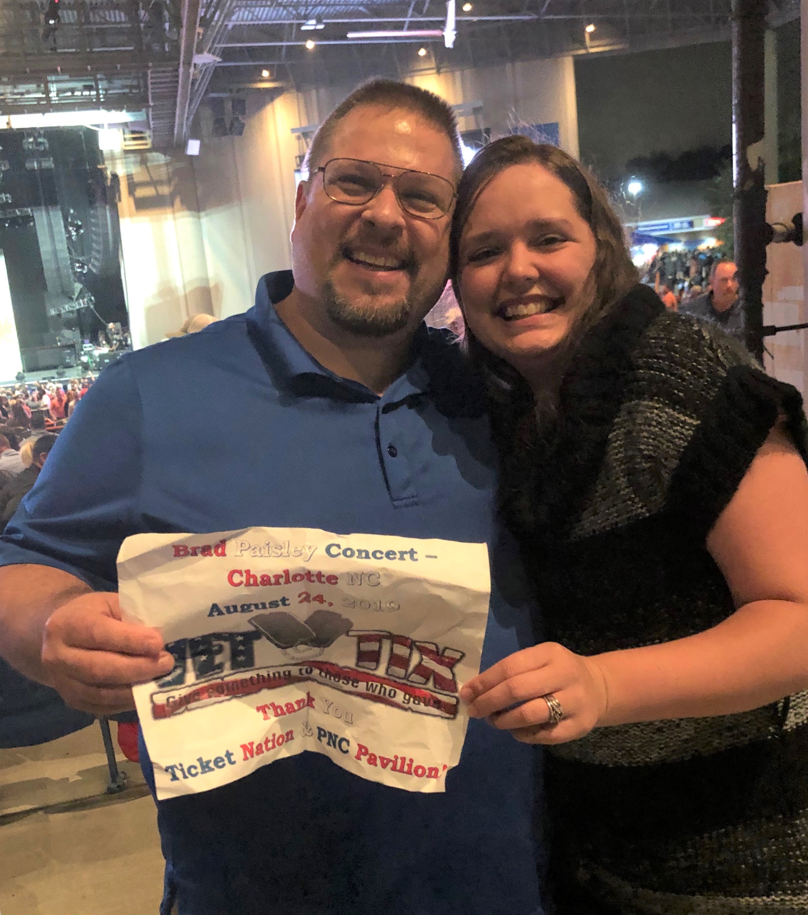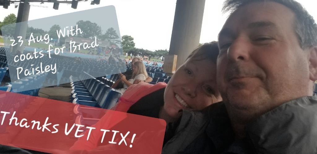 Great event and super seats...can't say thanks enough to Vet Tix. We have been looking forward to seeing Brad Paisley for years now and you've made it possible! What a blessing!