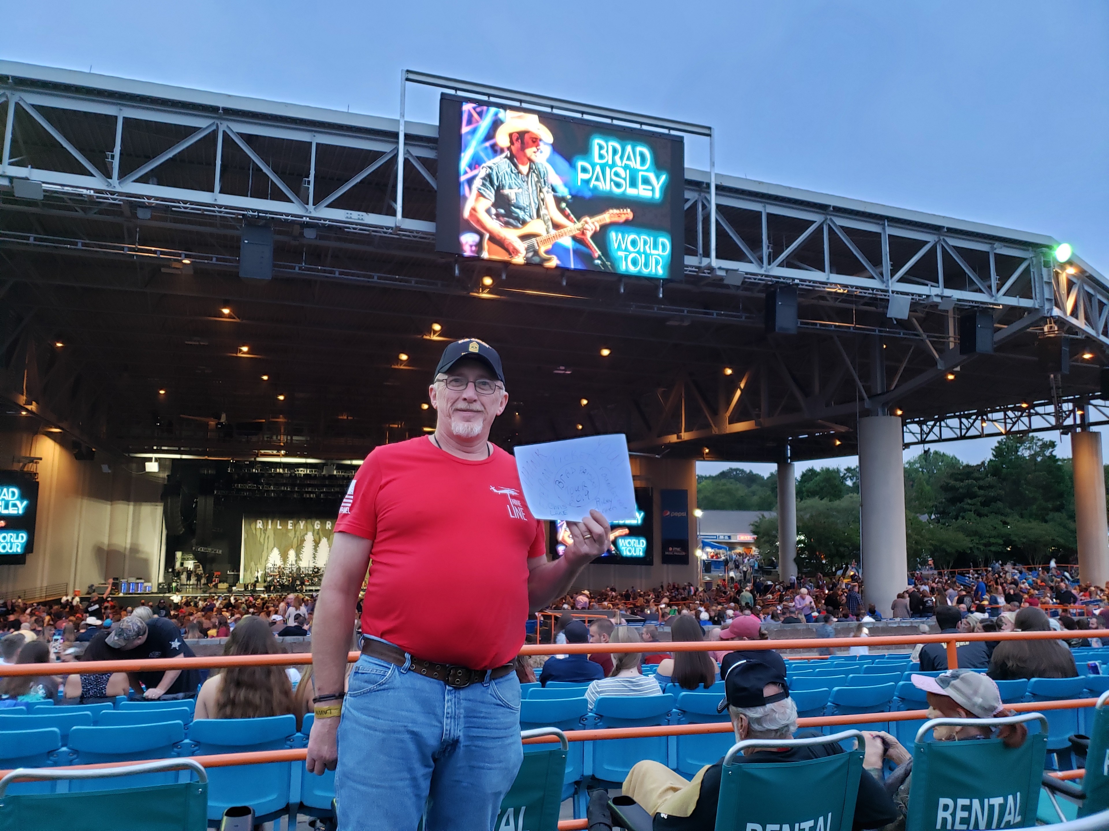 Had an awesome night with my daughter, grand daughter, and grand son, watching Brad Paisley with Chris Lane & Riley Green! Thanks so much VETTIX and Live Nation! Thank you, thank you, thank you, we all had a blast bonding over great music. Also met some fellow veterans there compliments of y'all.
