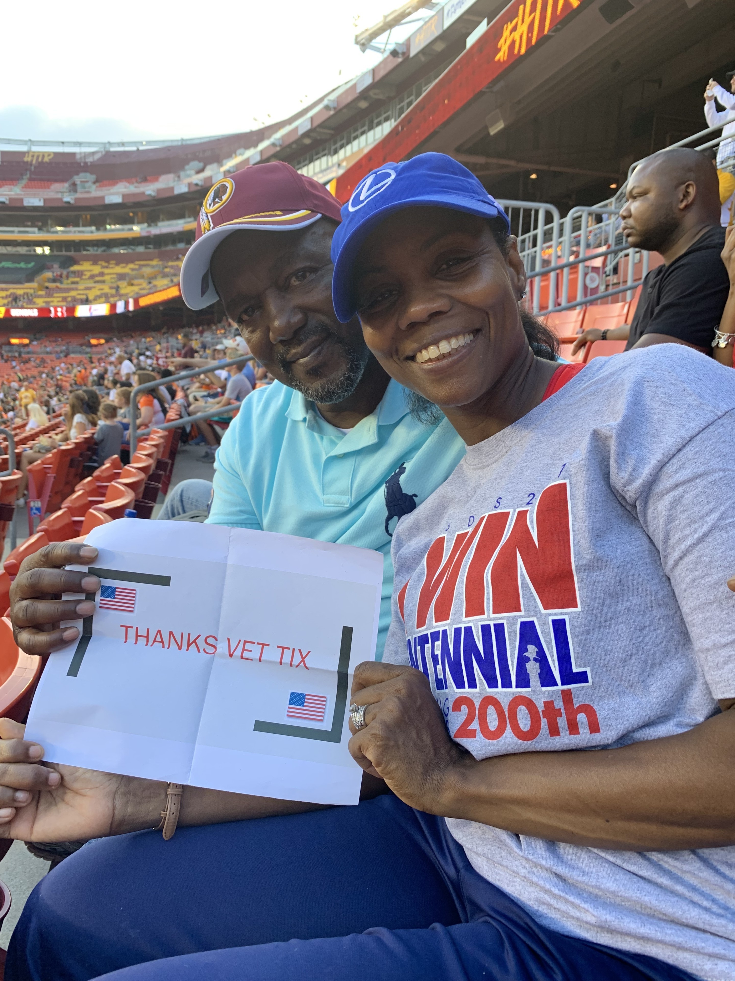 Thank you to the Washington Redskins and VetTix for the tickets to the pre-season home opener! Because of your generosity, as life-long Redskins fans, we can say: "We were there when Dwayne Haskins, Jr. threw his first NFL touchdown pass!" #HTTR
