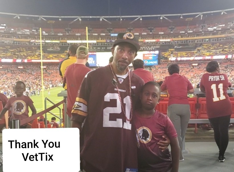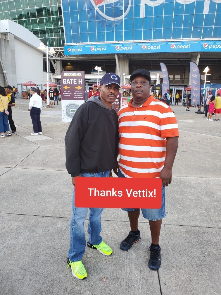 Thanks Vettix and the amazing people that support this great organization! My son and I had a great time at the Redskins game last night. It was the first time either of us had been to an NFL game. Thank you!!
