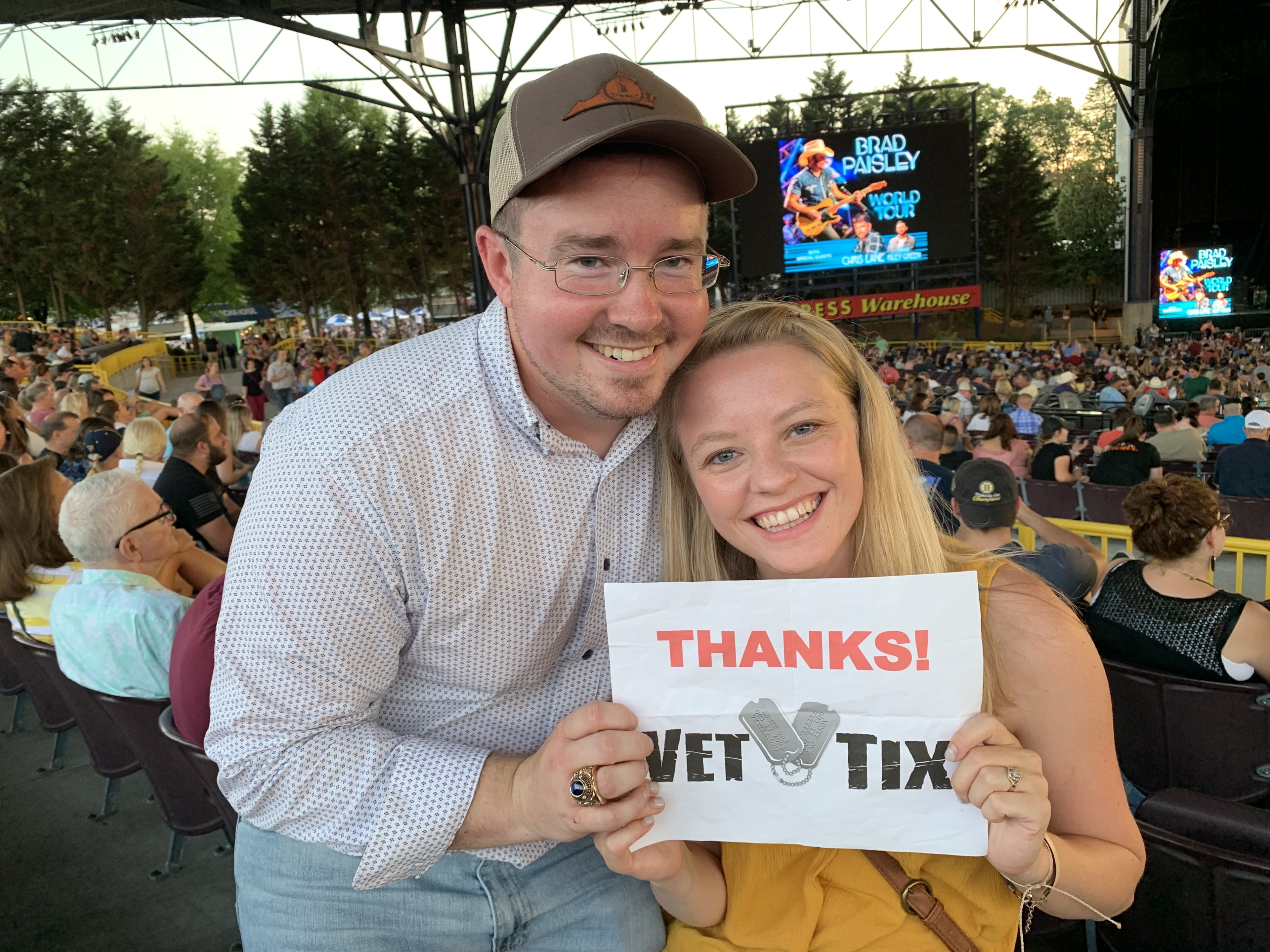 Thank you Live Nation for providing tickets for my family to see Brad Paisley. The concert was really good and the venue was a good experience. Seats under the pavilion roof made the night a lot of fun. Thank you for supporting veterans!