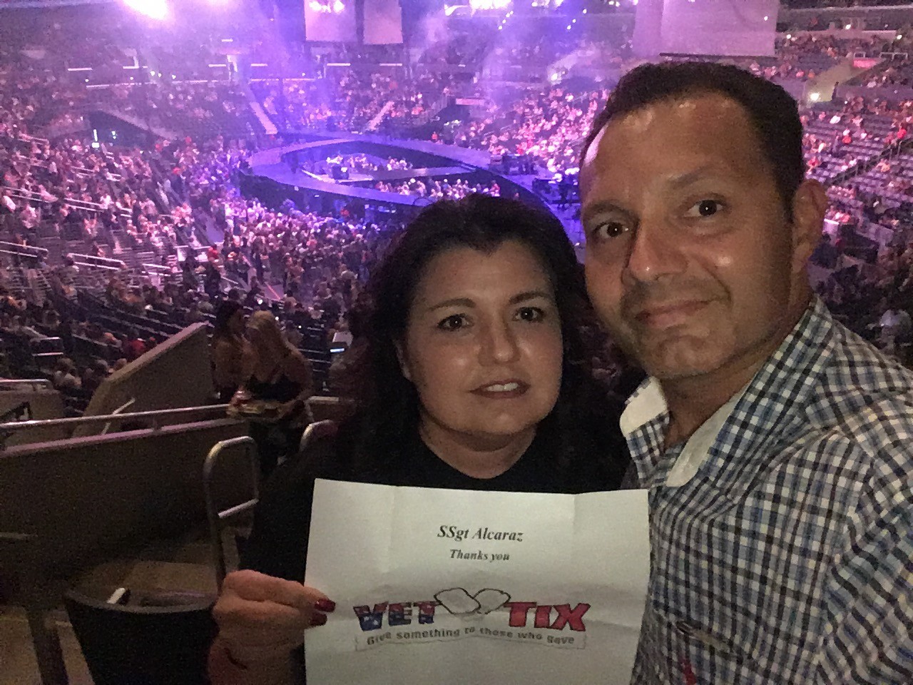 Thank you AEGAEG and VetTix for the Carrie Underwood tickets. We have been to Staples Center for other VetTix concerts and always enjoy ourselves, but this time our seats were, without a doubt, the best we've had. She really put on an amazing show and we had such a good time.