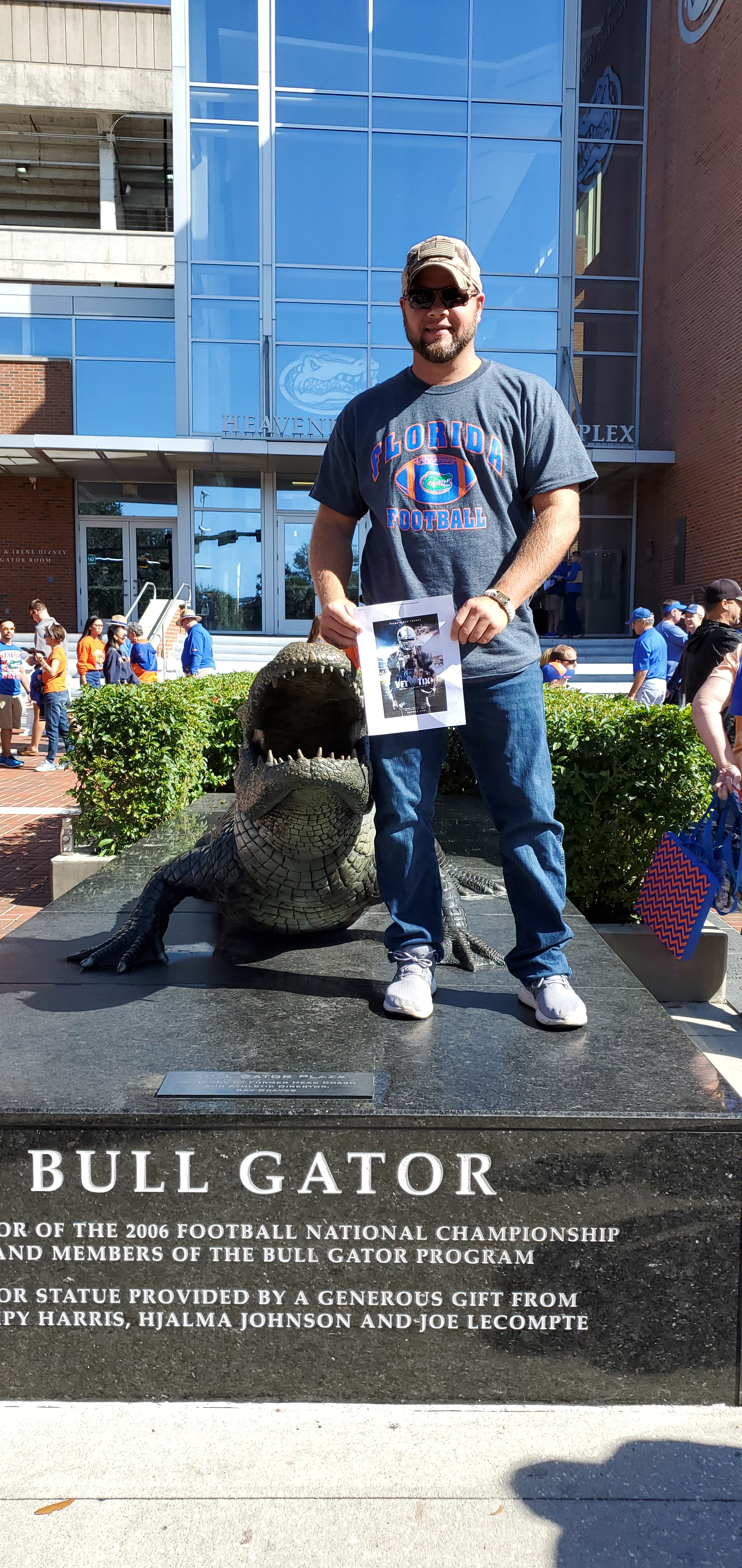 I want to thank you guys so much for the tickets! I am a 8 year active duty Army veteran and a die hard gator fan, have been my whole life. I took my family to the game and we all had a electric, amazing experience! My Son 5yrs of age, Daughter 7yrs, Wife and myself. It was our first game at the swamp and definitely not the last! We appreciate your donation so much and look forward to seeing our Gators play again!