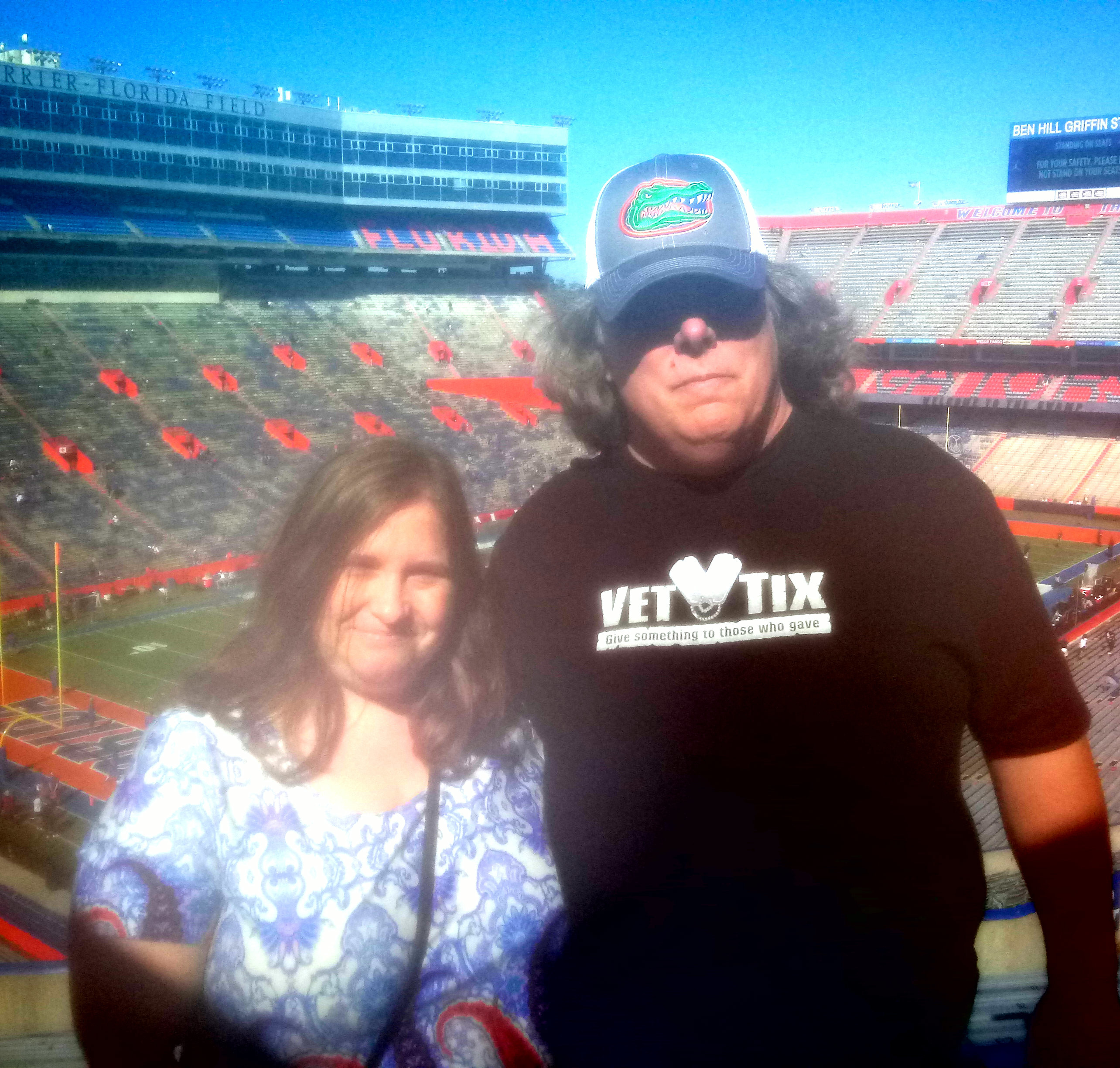 Heartfelt thanks to the University of Florida Gators for tickets to the Vandy game. Our first time to visit the Swamp! I've longed to see a game there! We enjoyed a great game and especially the marching band's Veterans Day tribute! I was also touched by the recognition. Thanks again to the University of Florida Gators and to all the wonderful folks at VetTix! We really enjoyed the day on campus!
