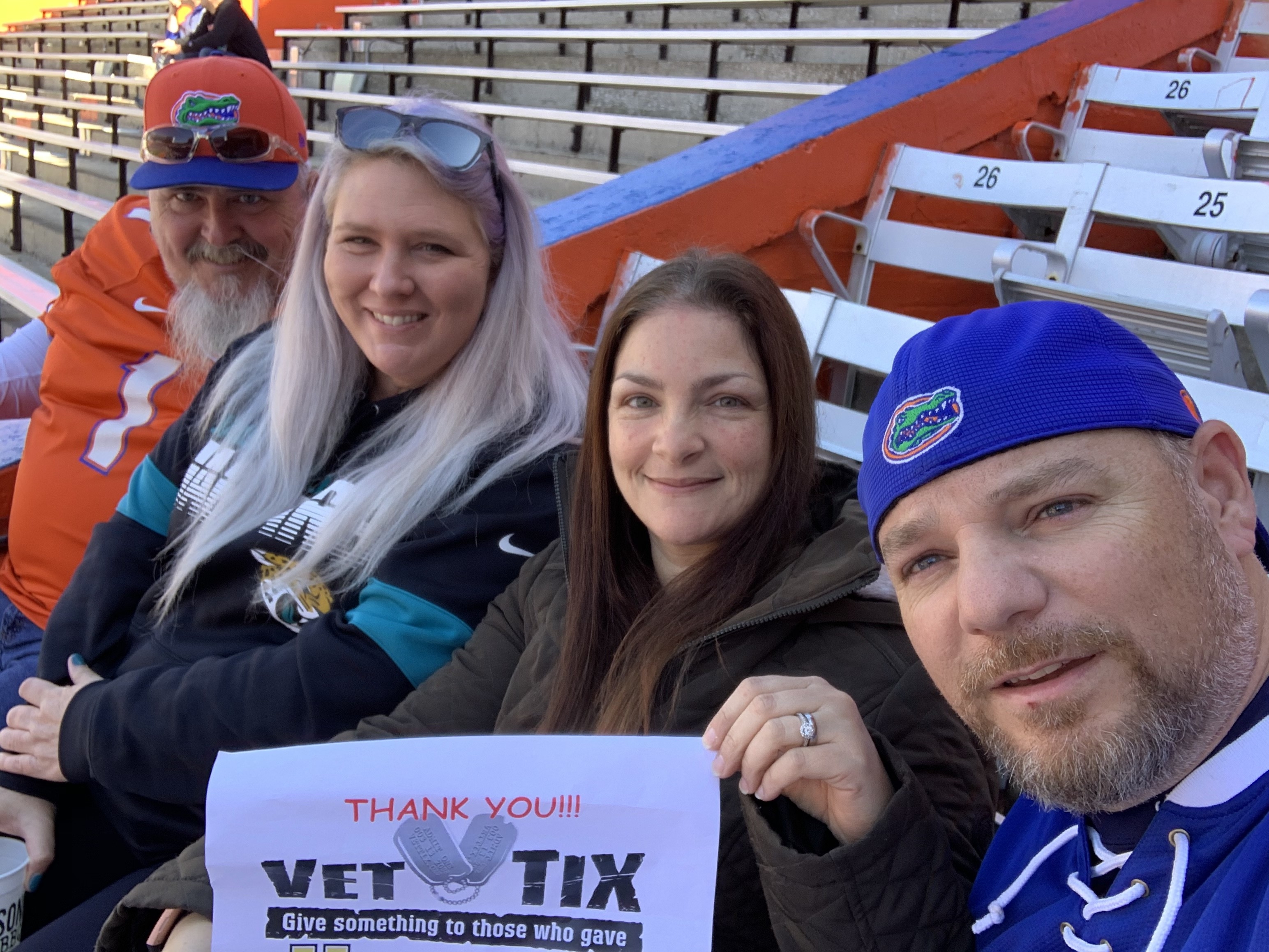 Thank you to VetTix and donors for a great day at the University of Florida Ben Hill Griffin Stadium in Gainesville, Fl. Go Gators!