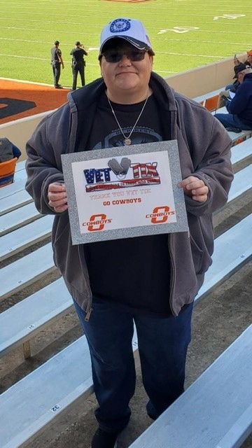 Thank you Oklahoma State University & Vet Tix for the tickets to the football game. We had a blast. We had never been to a division 1 football game. It was such a neat experience. Thanks