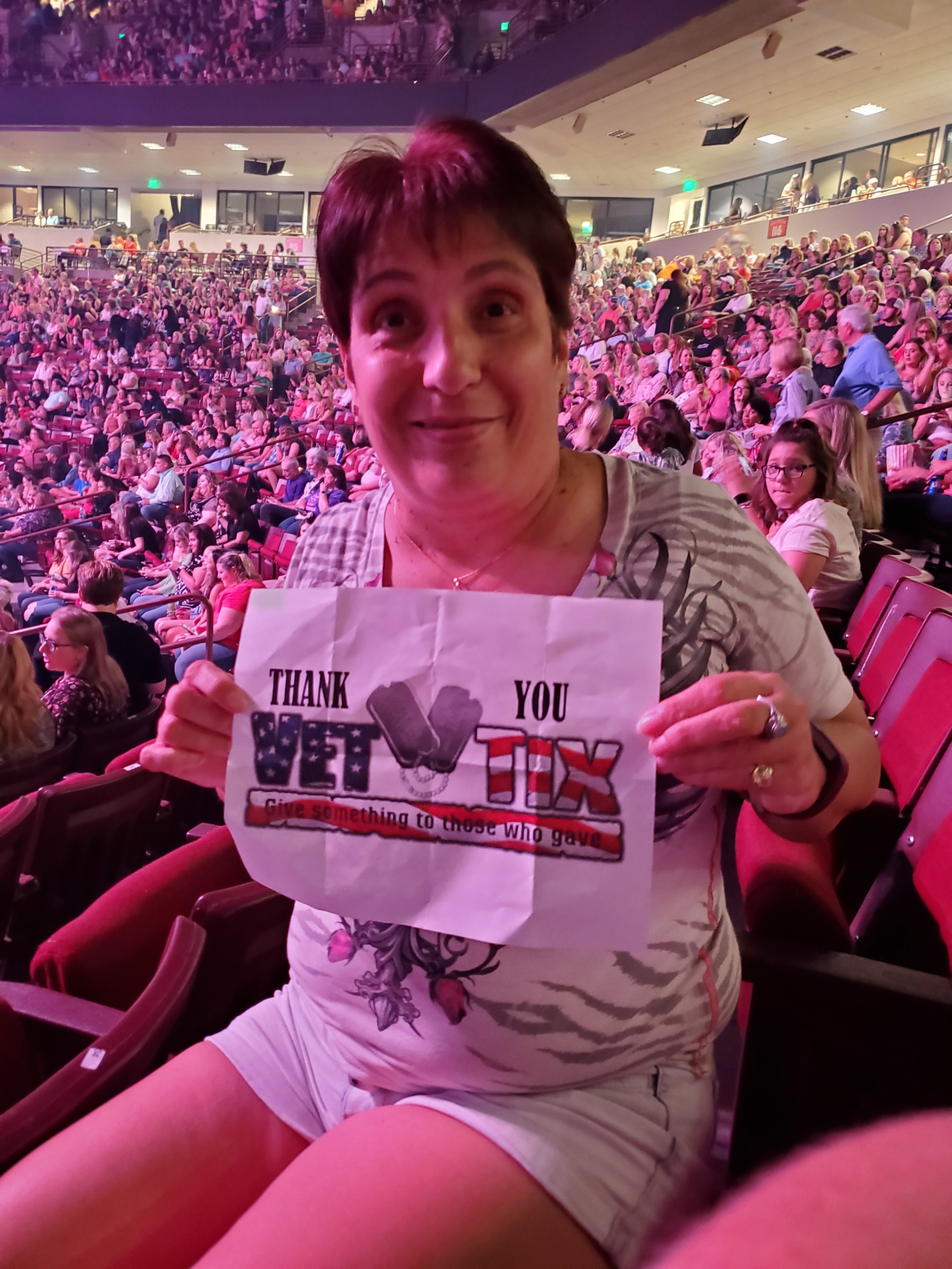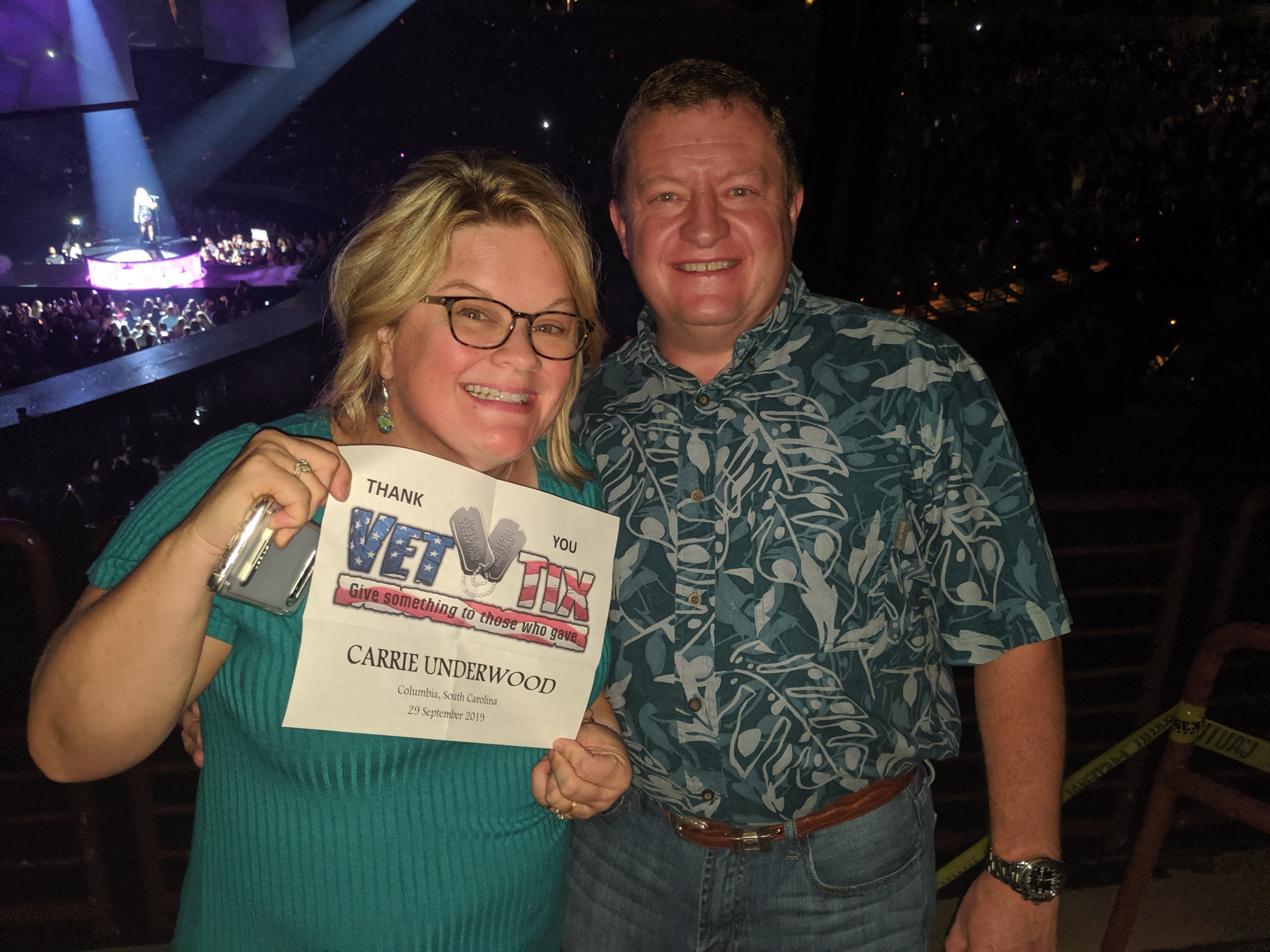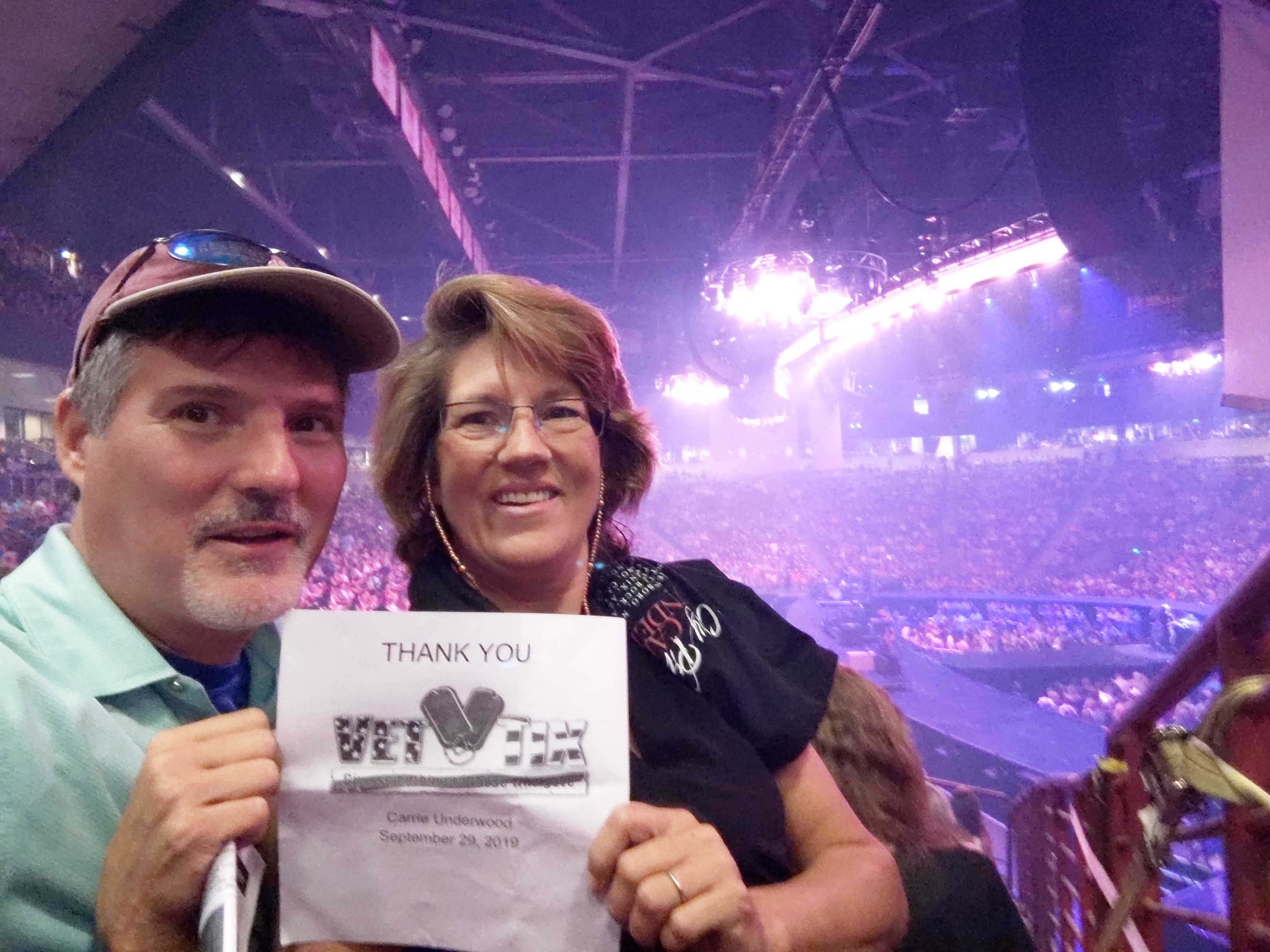 A huge Thank You to Live Nation, VetTix and Carrie Underwood for an outstanding evening! I was able to share the evening with fellow veteran friends and we had a blast. Without your generosity there's no way we could have attended.