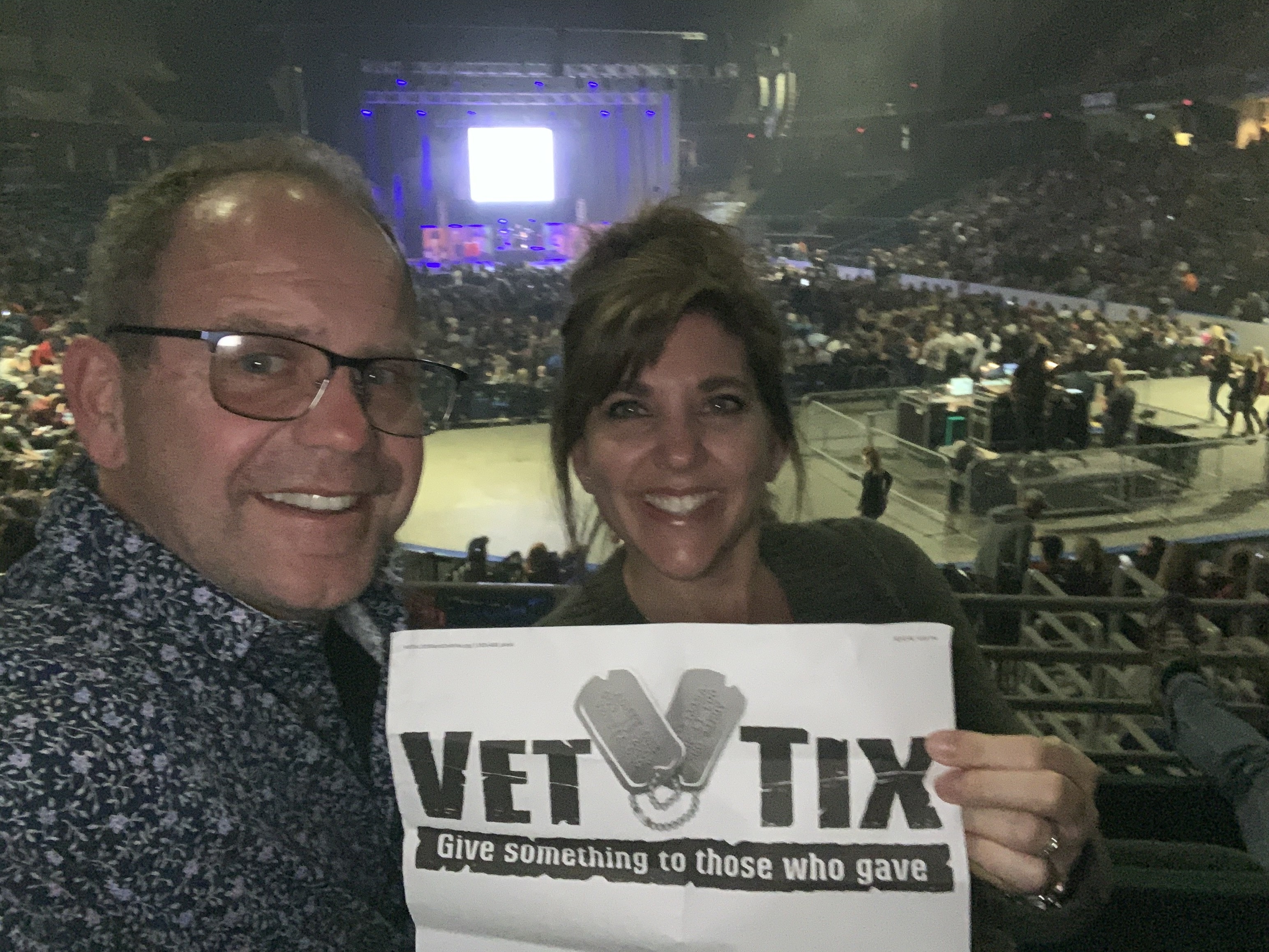 Expressing my appreciation to the Family Arena for their generosity in providing concert tickets to VetTix. We had a great time and the show was fantastic.