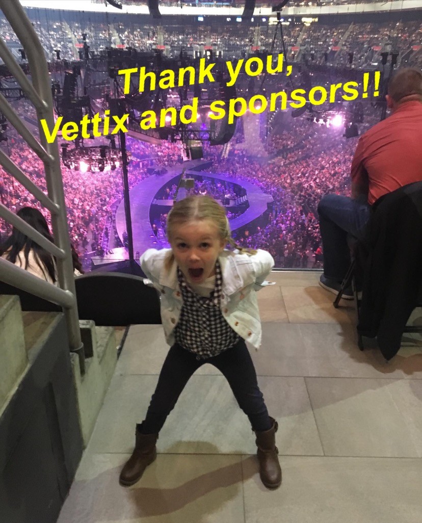 Thank you so much, Vettix, Carrie Underwood's people, Wells Fargo Center, and all of the unsung heroes who made this possible!! You made one little girl VERY happy for her first concert!!â¤ï¸ðŸŽ¤ðŸ‘¢