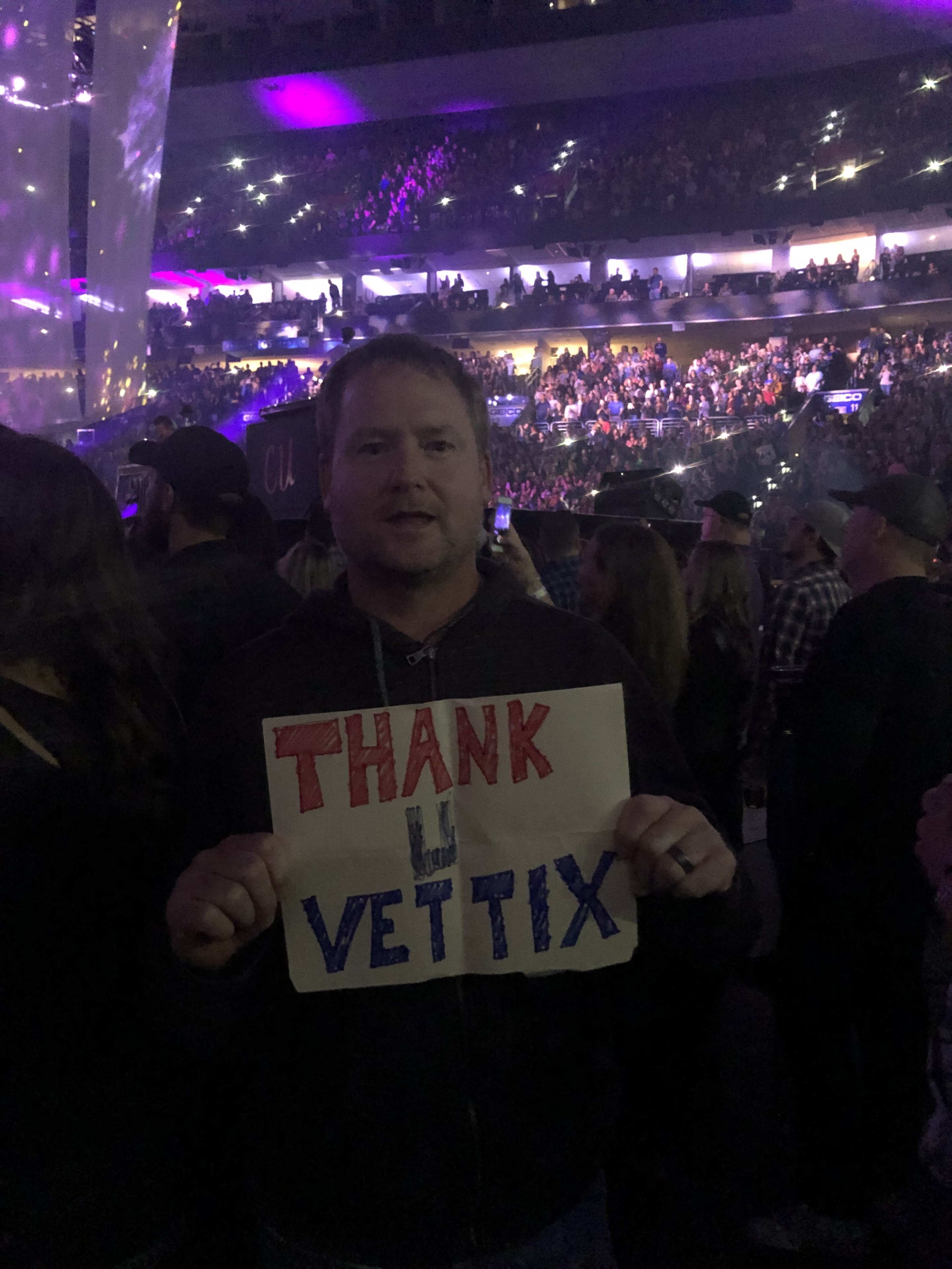 This was a bucket list item for me and I don't know who donates the tickets but I always seen some for vets at her concerts. This was the first time it worked for my husband and I to go since he's home from overseas temporarily. What a REAL TREAT; she puts on an amazing show! It means so much to feel love and support! Thank you Vet Tix and Carrie Underwood!