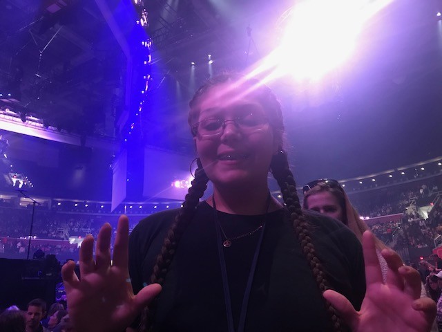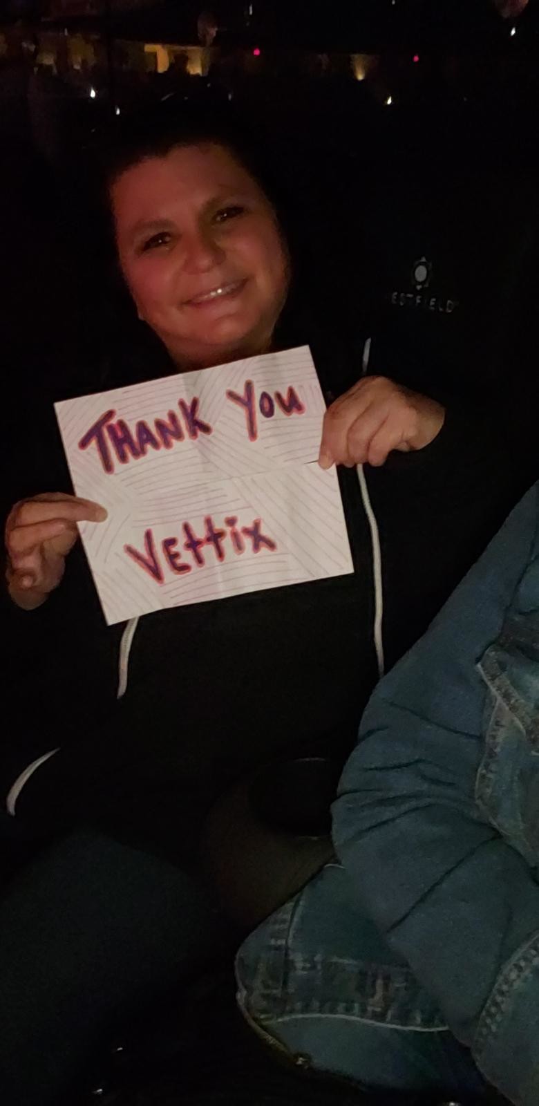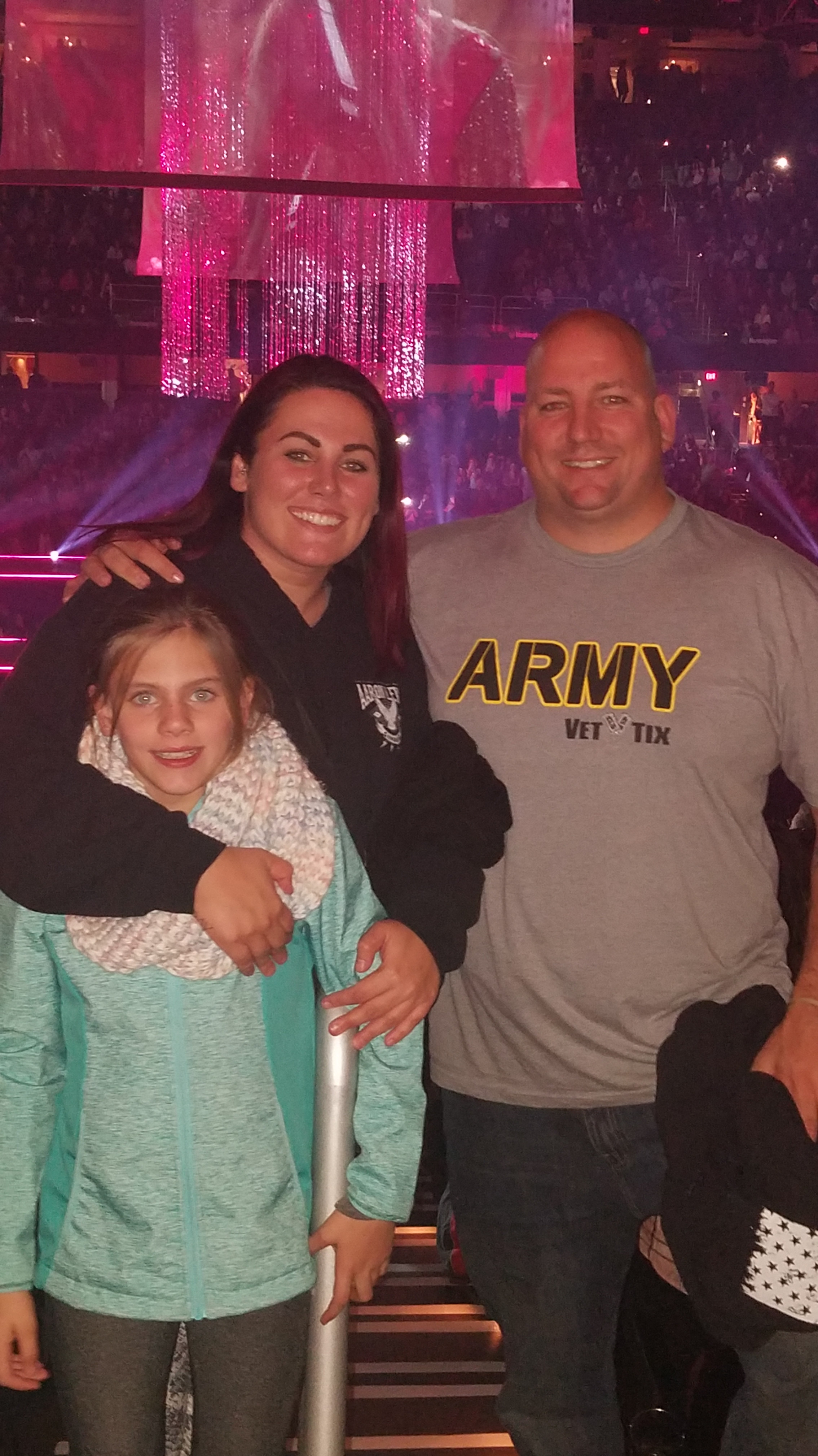 My daughter loved this concert. She was fascinated by the changing screens and the 360 degree stage. Thank you AEGAEG for donating these tickets to VETTIX.in support of veterans and their families. We had excellent seats and a wonderful time, made possible by VETTIX. We were in a rush and did not get to print a sign, but we are sincerely grateful.