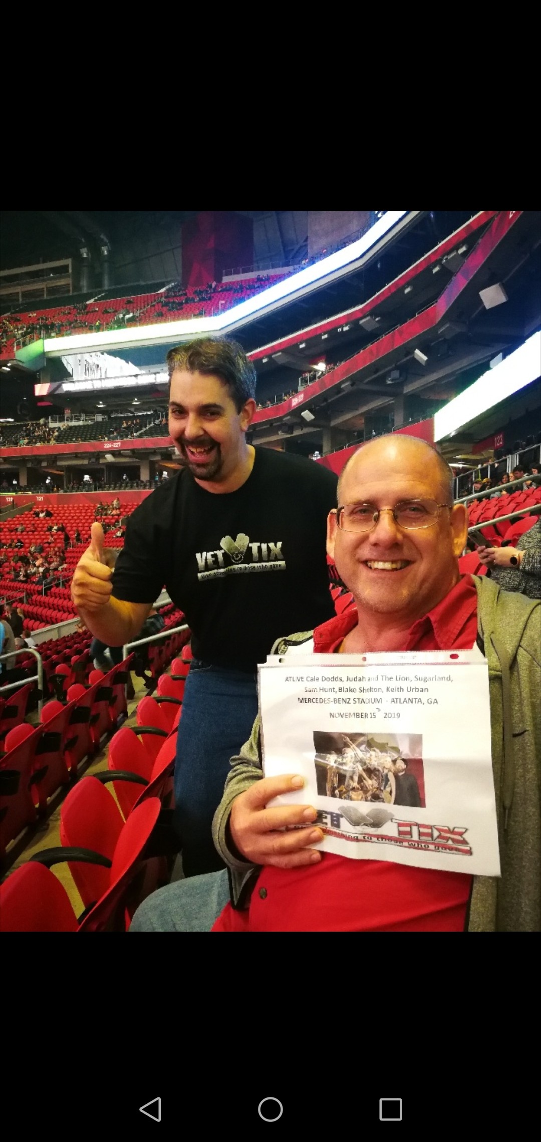 Thank you so much for the tickets. We had a great time and the crowd was incredible. Many thanks to supporting veterans by AMB Sports + Entertainment -Mercedes Benz Stadium. The stadium was incredible.