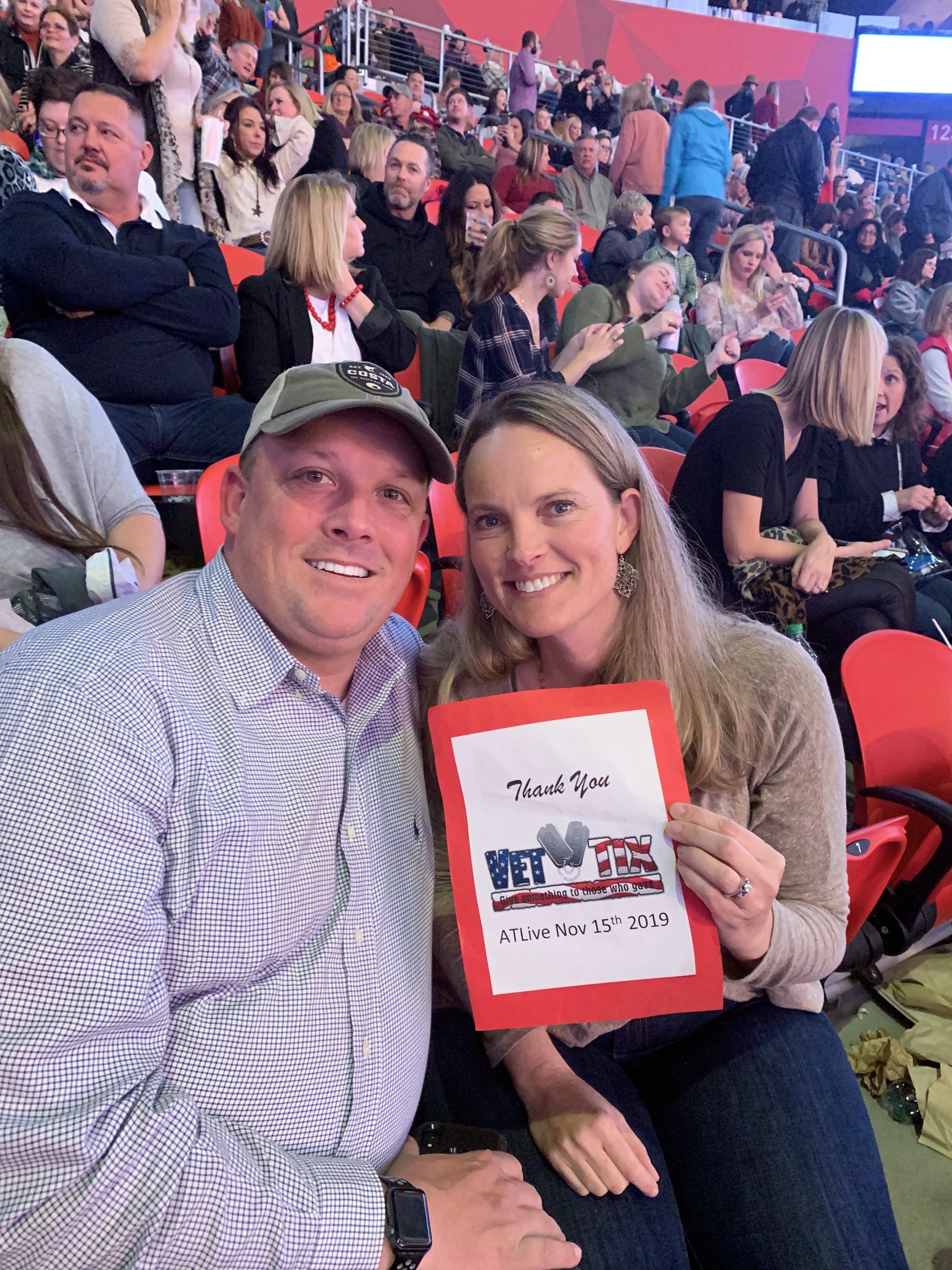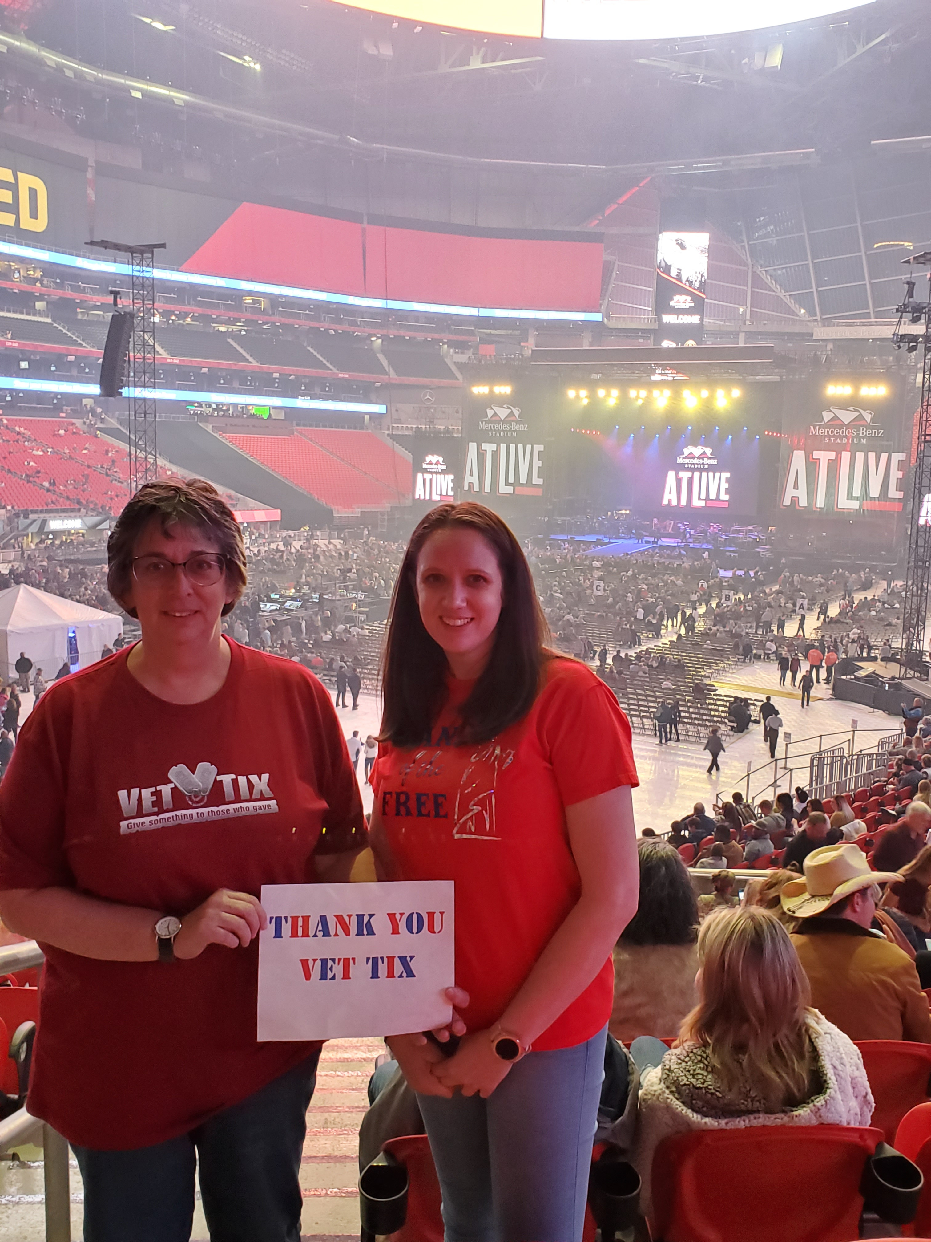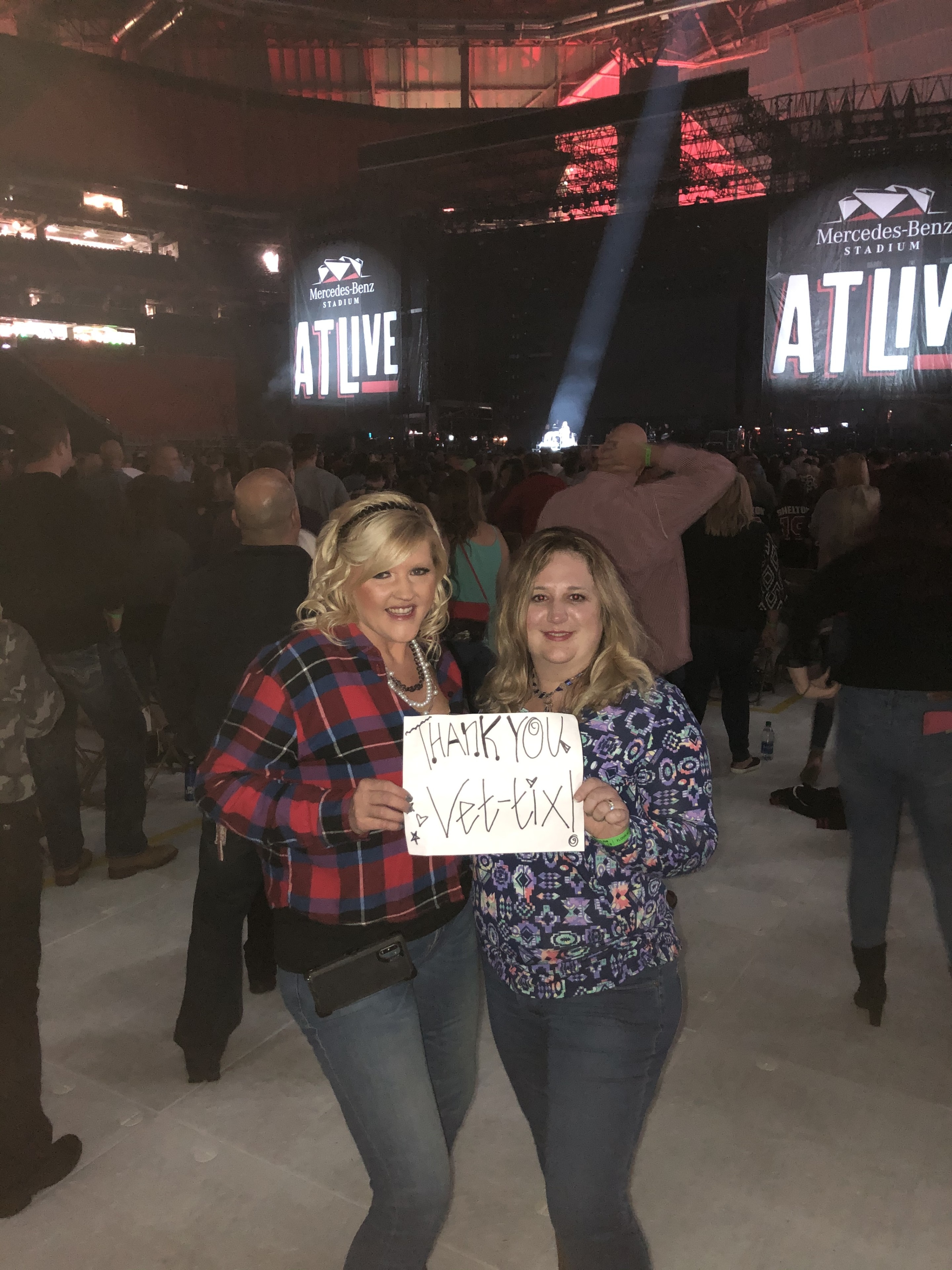 I would like to personally thank you for your recent contribution to vet tix. This event could not have been a success without your involvement. Because of your support we had a wonderful time at the ATLIVE concert Friday night 15th of November. It means so much to me that there are very kind and generous donors like yourselves that truly have a heart of Gold for Veterans.. The experience was pretty cool. We got a hotel in Atlanta then took an Uber to the Mercedes Benz Stadium. Then our seats were wonderful. I really enjoyed the atmosphere and all the great music. Thank you so much Very respectfully Josh Cassan
