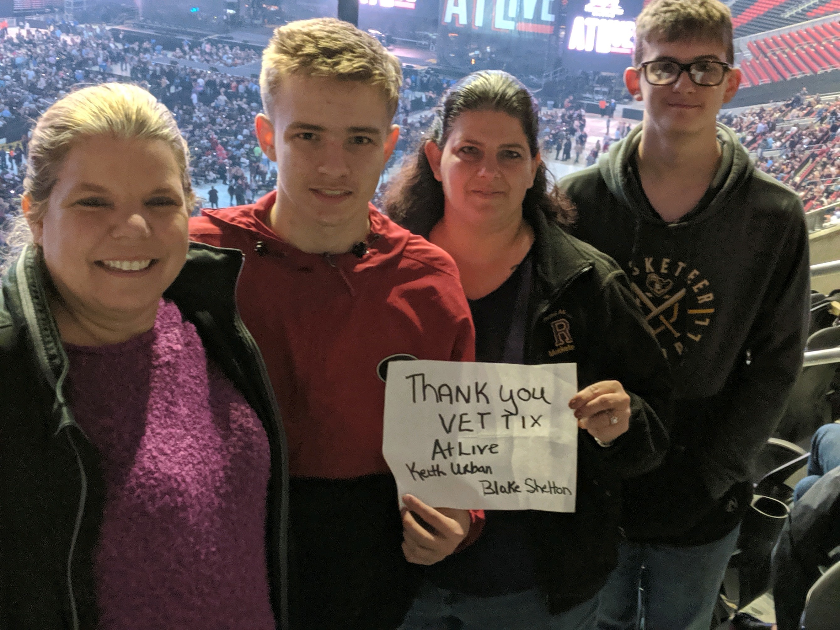 Thank you so much to AMB Sports + Entertainment for the great seats to see Keith Urban & Blake Shelton! Your support of veterans and their families is greatly appreciated.
