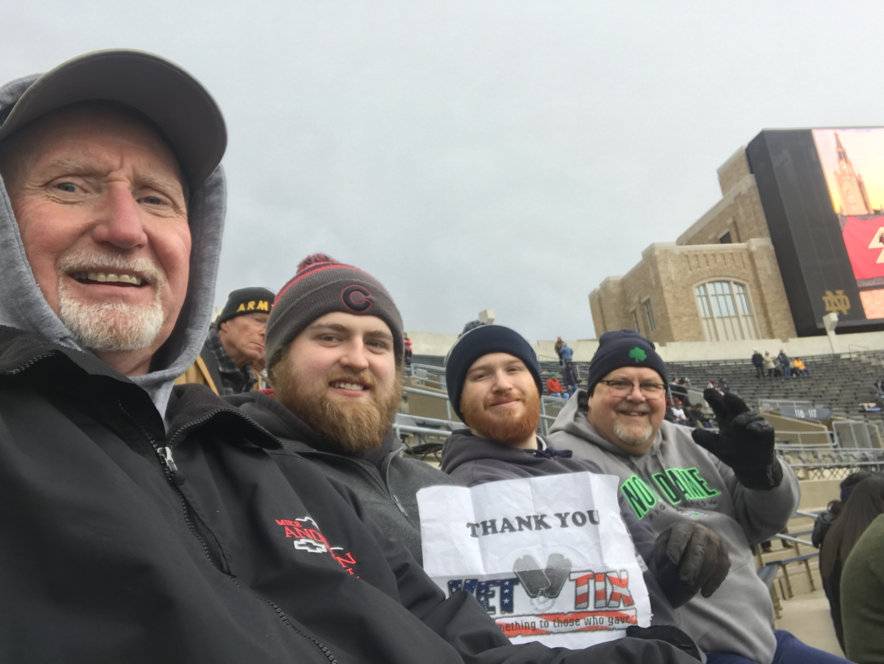 Thank you Notre Dame and VetTix. I have been able to attend a few games with family and friends that otherwise I would not be able. Your commitment for us veterans is very much appreciated.