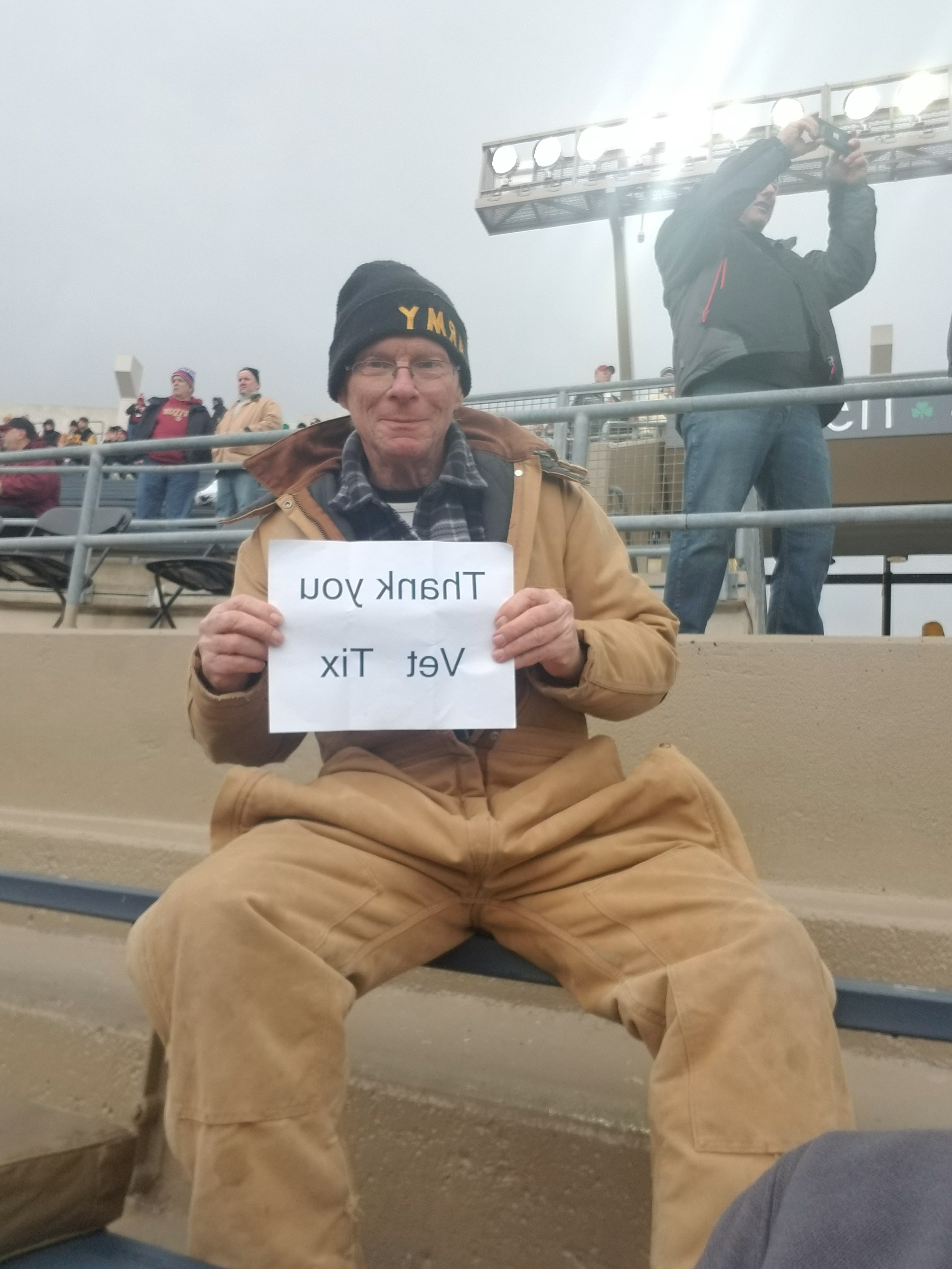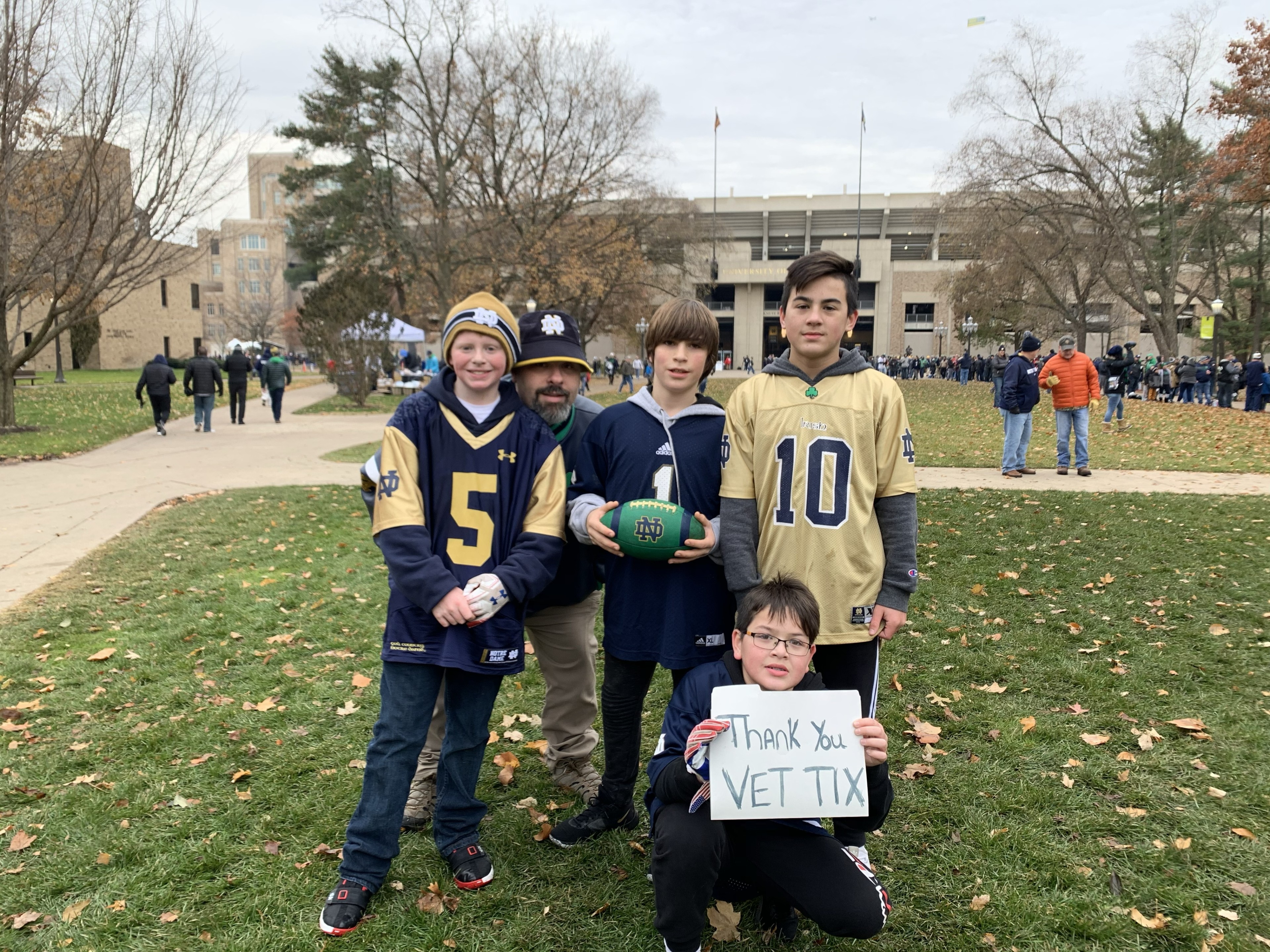 I would like to say a Big Thank You to the University of Notre Dame, NCAA & Vet Tix for the tickets to senior day for ND Football, which was a freezing blowout! The game wasn't the only exciting thing, having 2 grandkids seeing a game in person was exciting in itself. Thank Again for another Great Day!