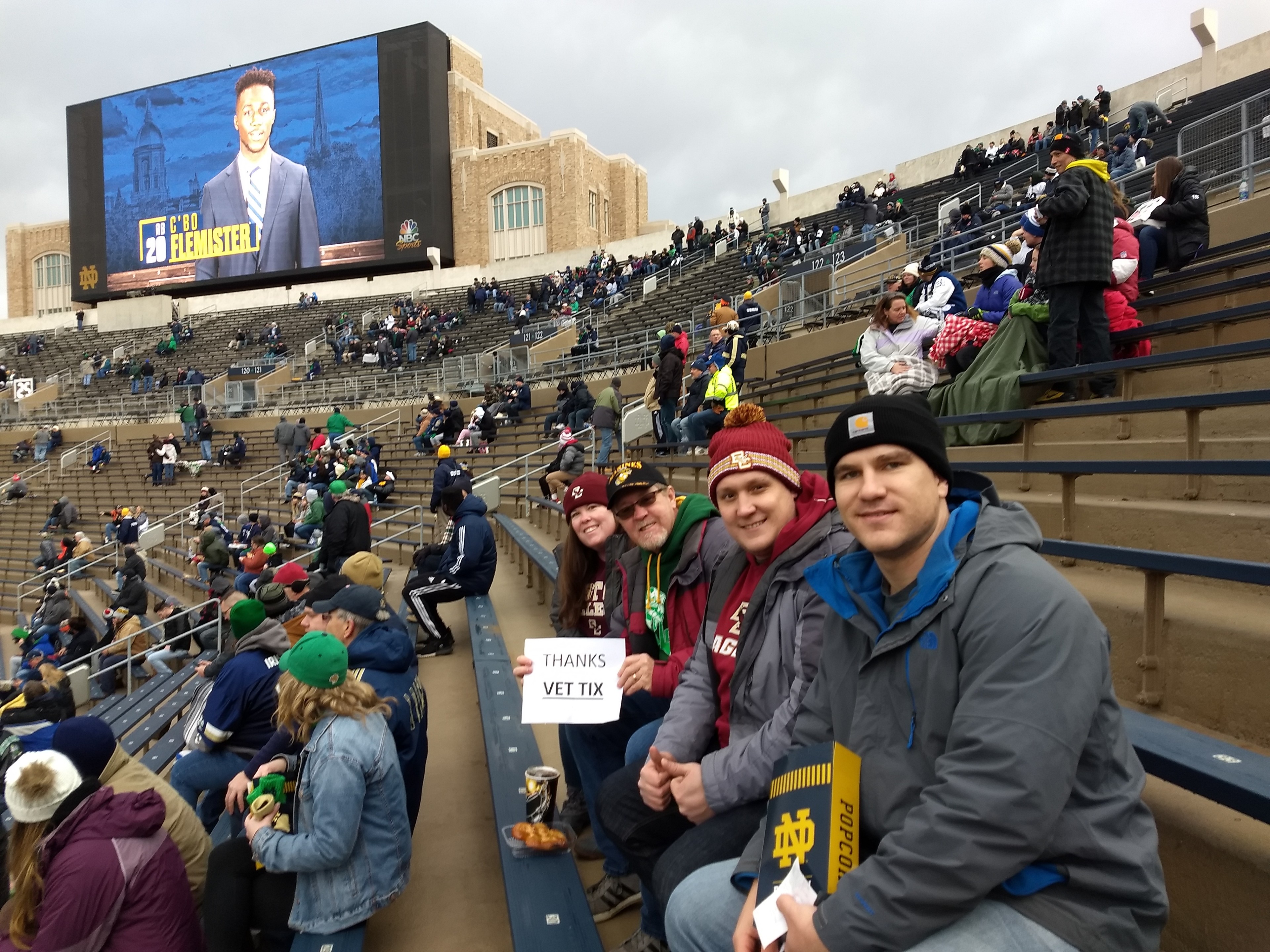 Thank you ND for supporting the veterans and donating the tickets for the game against BC. I had a great time creating once in a lifetime memories!