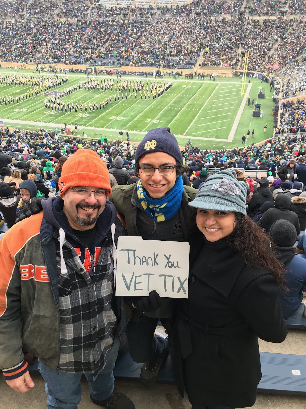 I want to say thank you to Notre Dame for providing Boston College tickets to Vet tix. It was awesome to attend the Boston College game. Although, it was cold I'm very happy we were able to attend the game. It was nice to be able to attend the final home game of the season and ND didn't disappoint, they played a fantastic final game for their seniors. Thanks again!