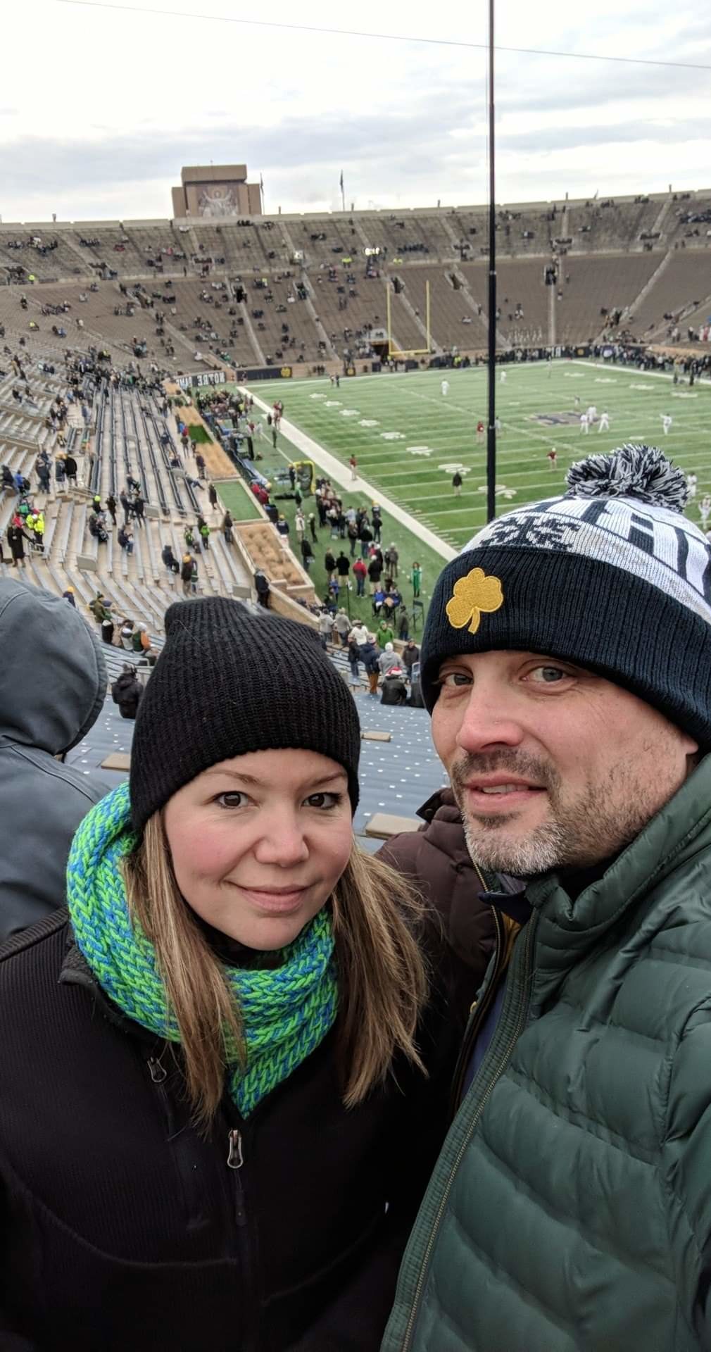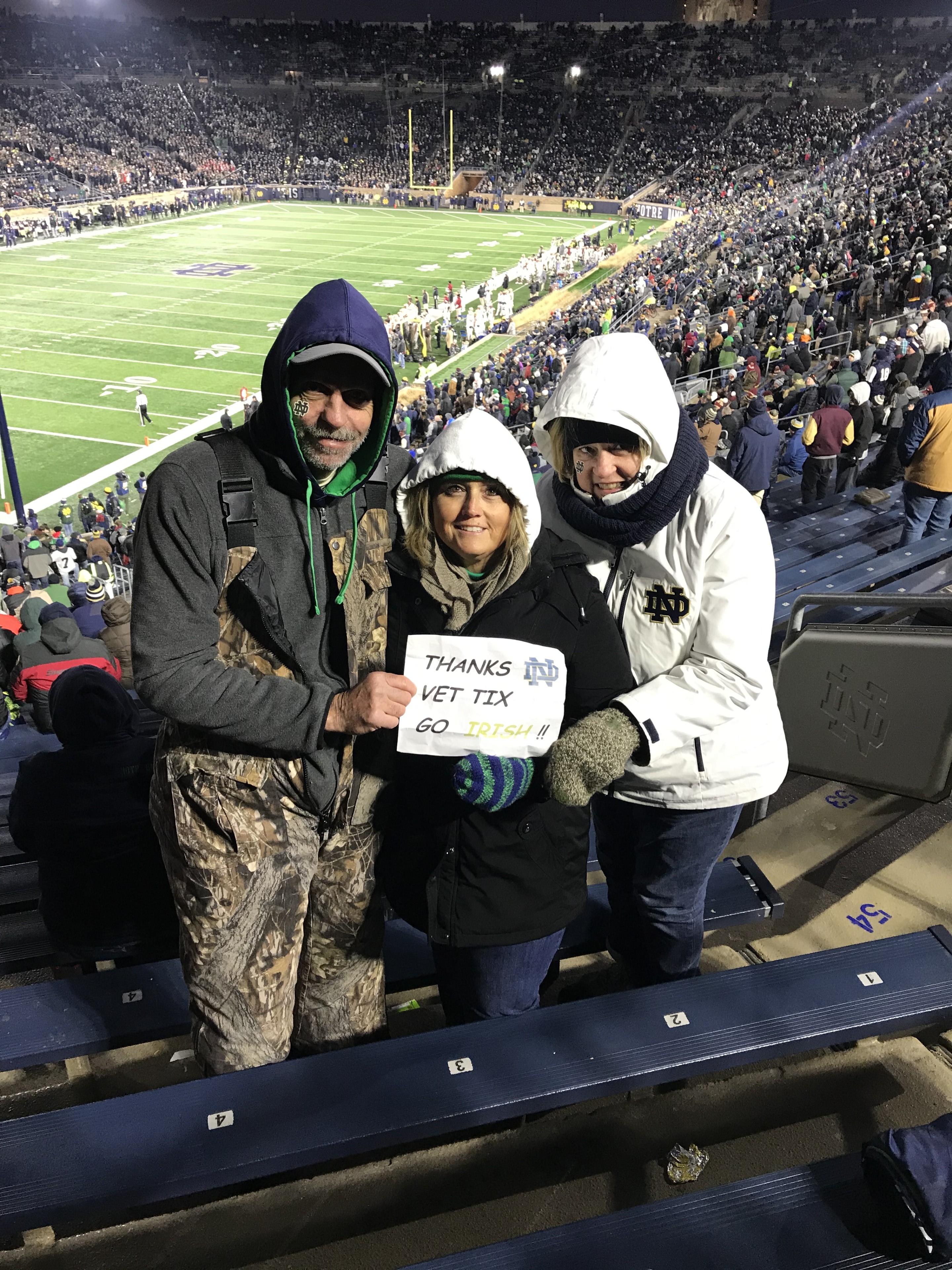 Thank you Vet Tix, Notre Dame and NCAA for the tickets! We braved the cold and had a great time watching the Irish win! The senior day spotlights made it even more special. The day will live in our memories forever!!