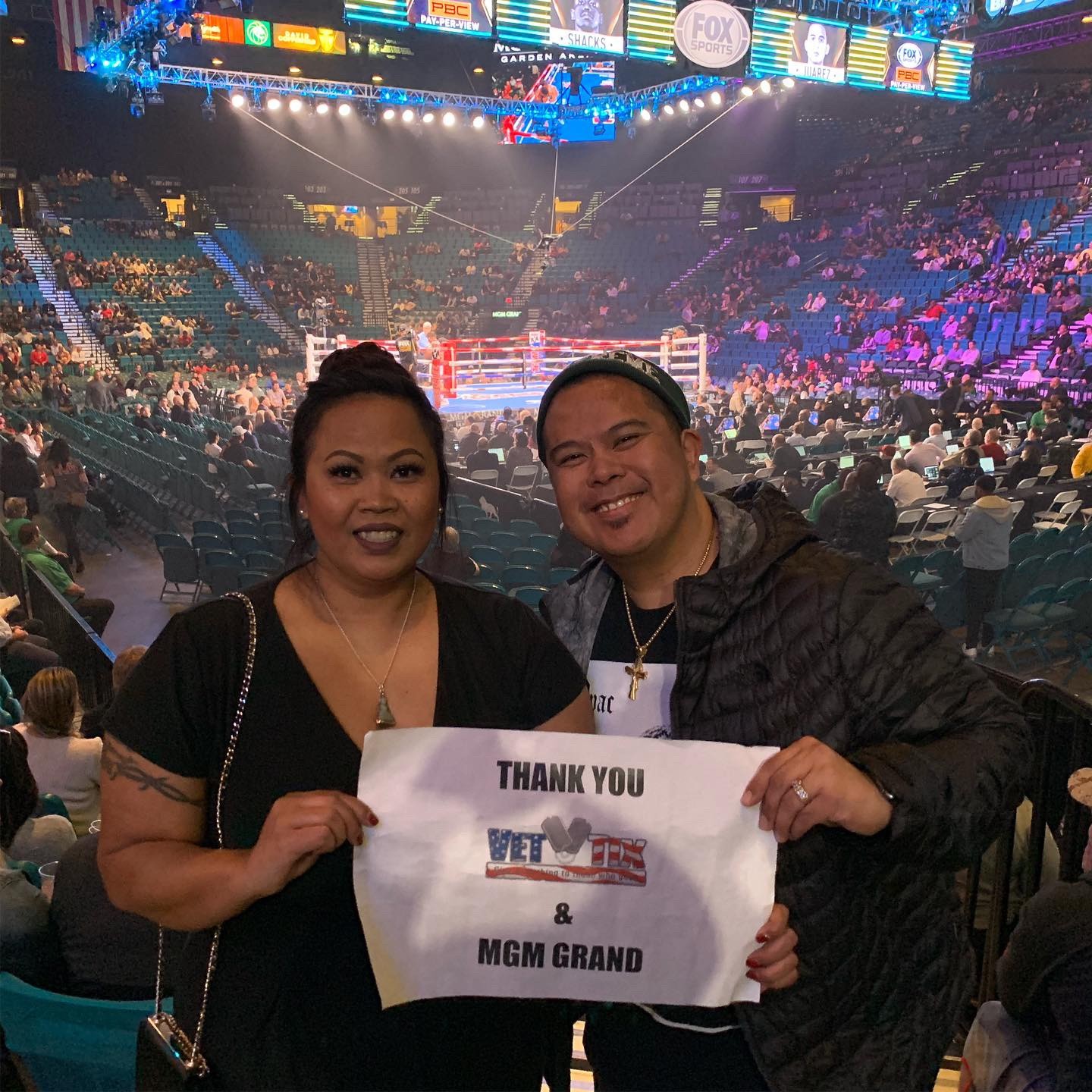 I and my wife have enjoyed the sports event held at the MGM Grand Garden Arena. We are so happy to attend such special event but that wouldn't be possible without the donations by MGM National Harbor and assistance by VetTix organizations. We thank you very much.