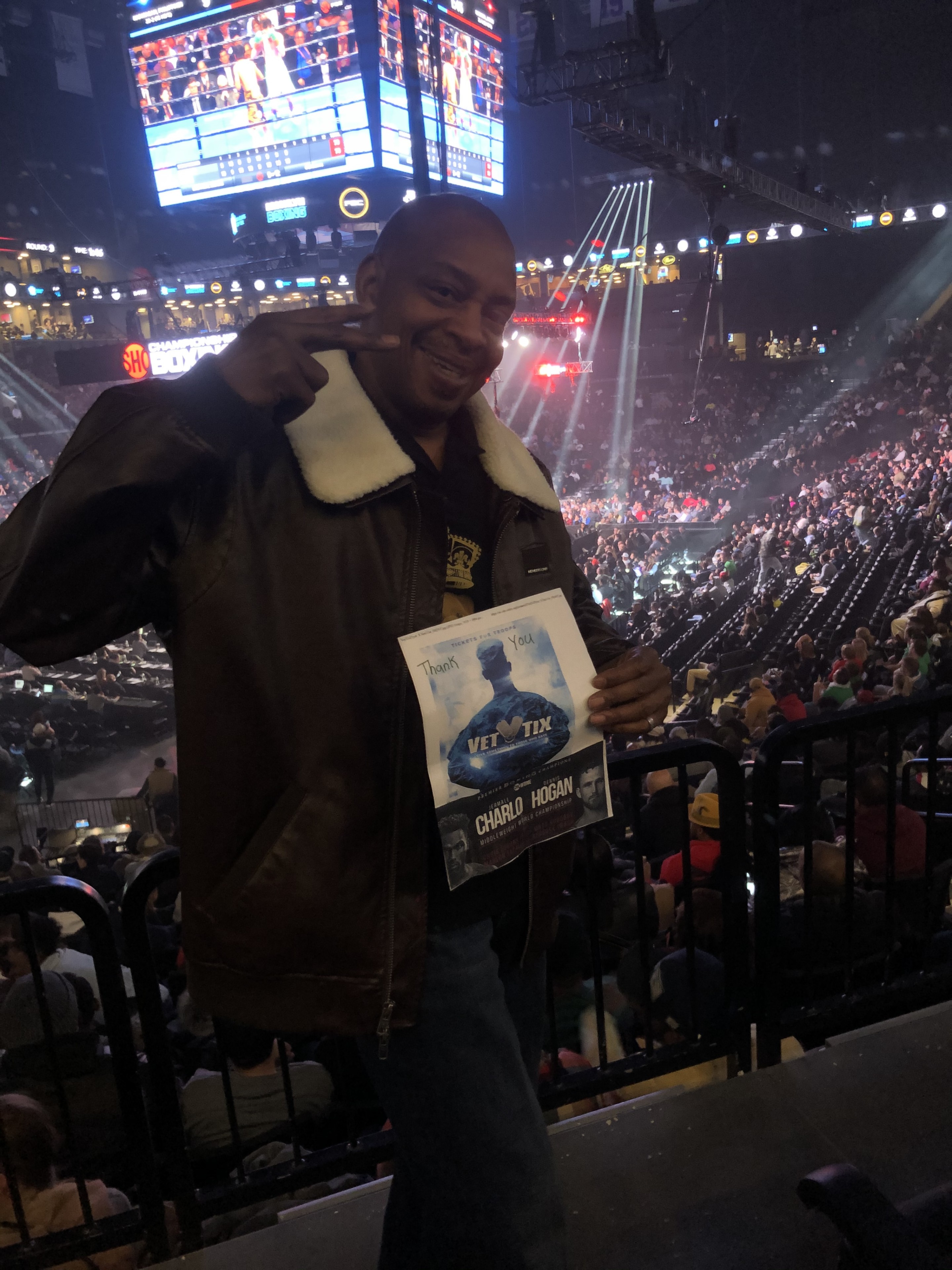 Dear Vet tix: I sincerely want to give thanks to the organization for my first opportunity to see a live boxing match!! Shared it with my twin brother!! IT WAS AWESOME!!!!!