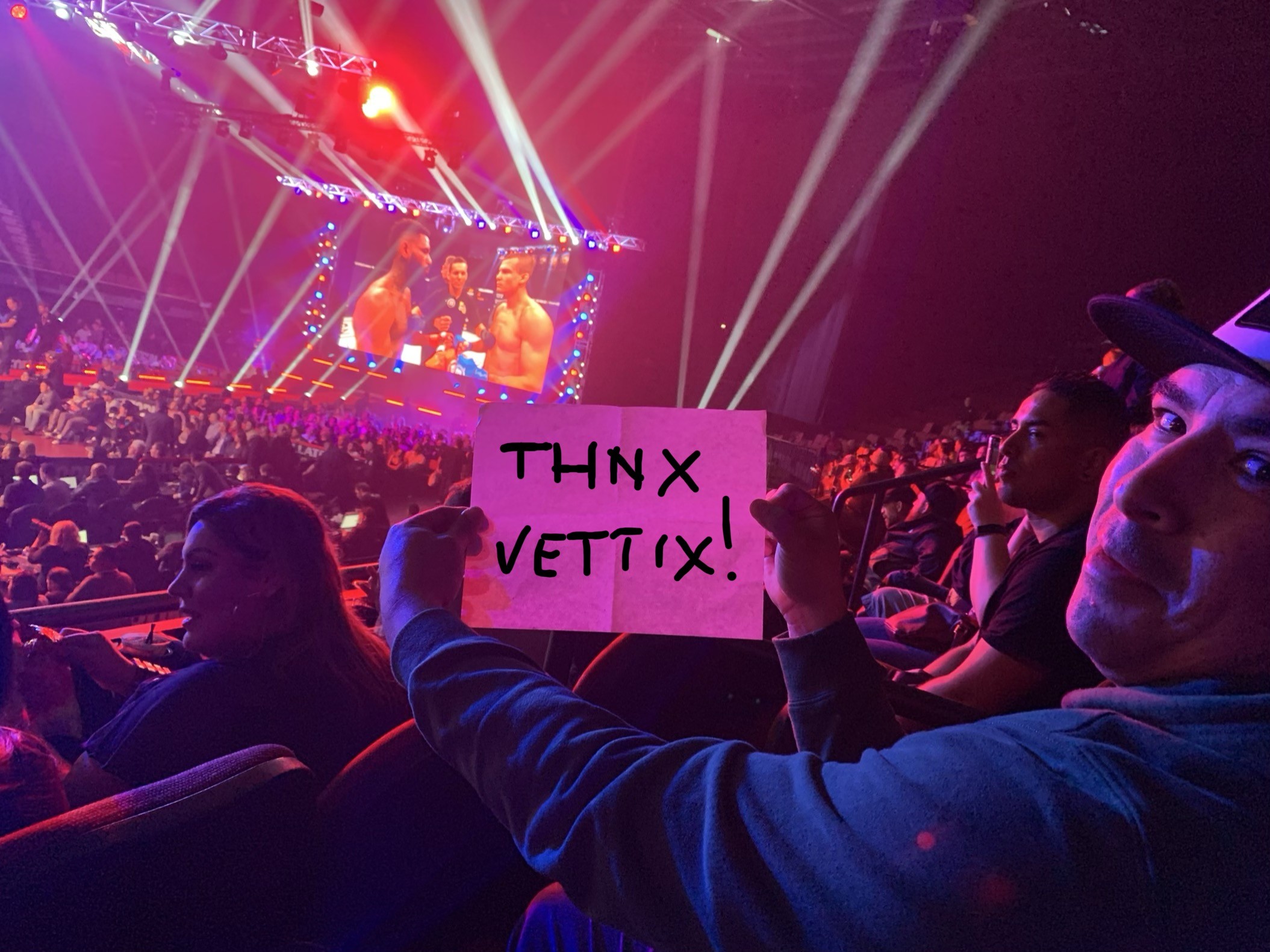 Thank you to Vettix and the donar that donated the tickets! I had great seats! It was my wife's first mma event.