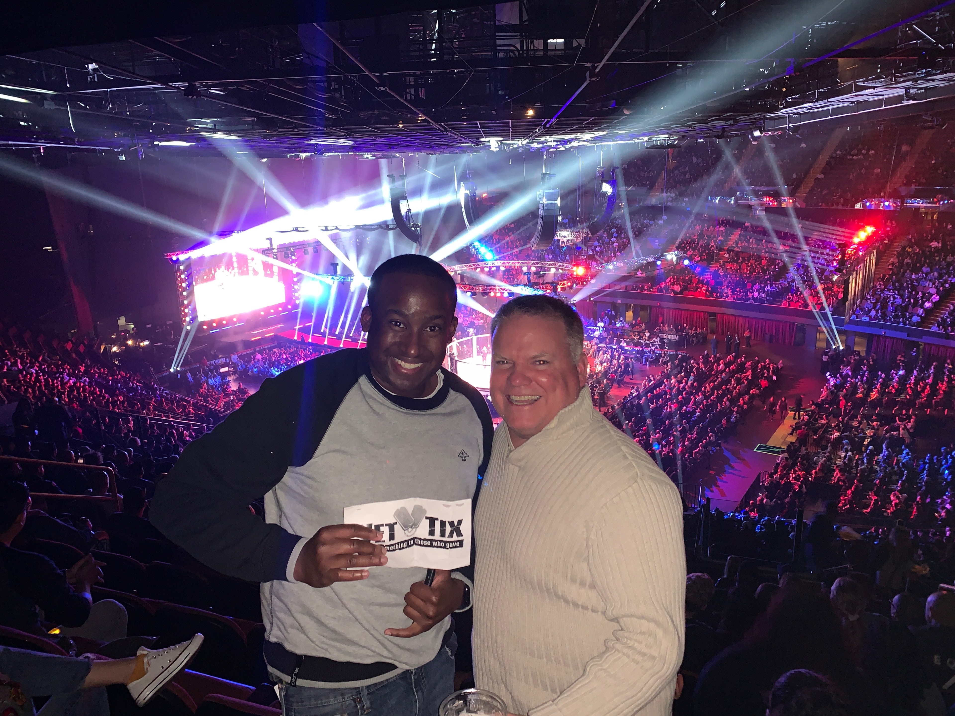 Thank you so much for the family night out. My son trains MMA and BJJ and he really wanted to go to this fight to support his class mate in his first Bellator fight.